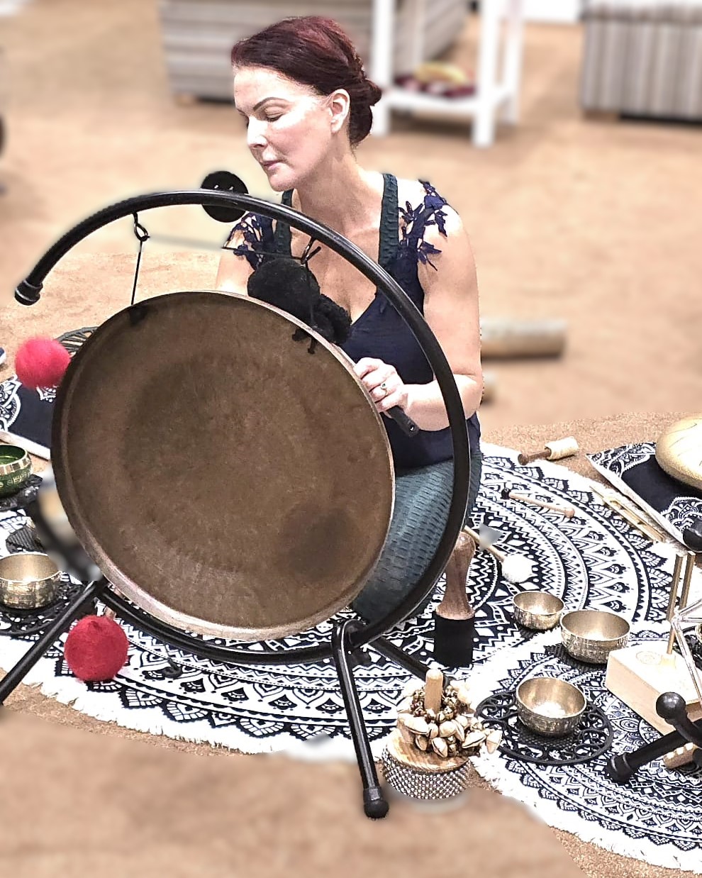 Using Tibetan singing bowls she creates powerful sounds, vibrations and musical notes that resonate long after having been played, they are used for meditation and relaxation, as well as for personal spirituality.