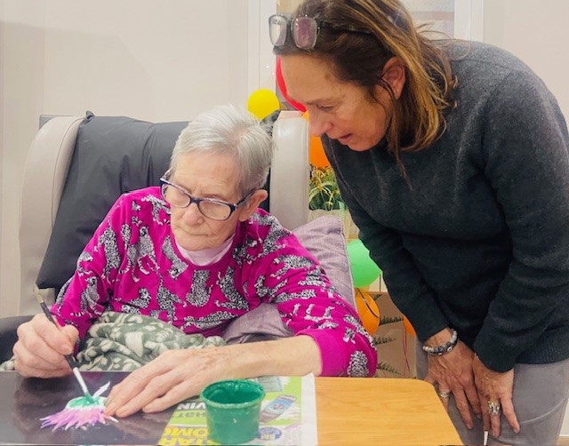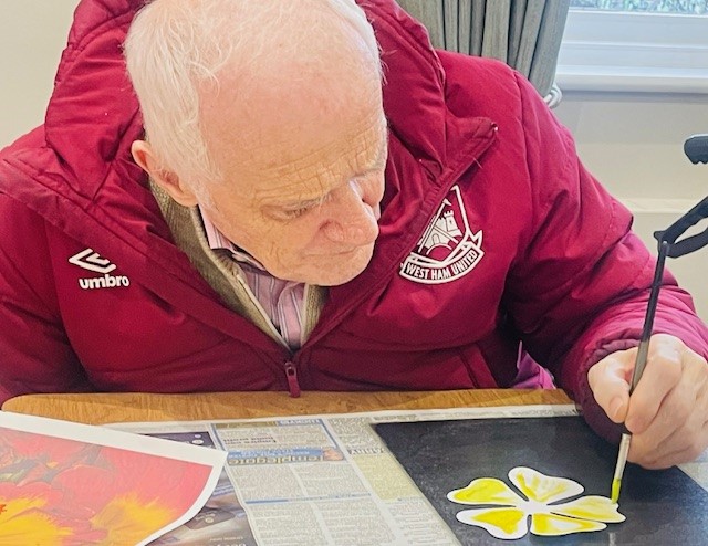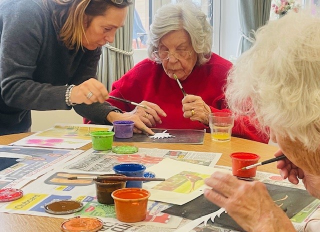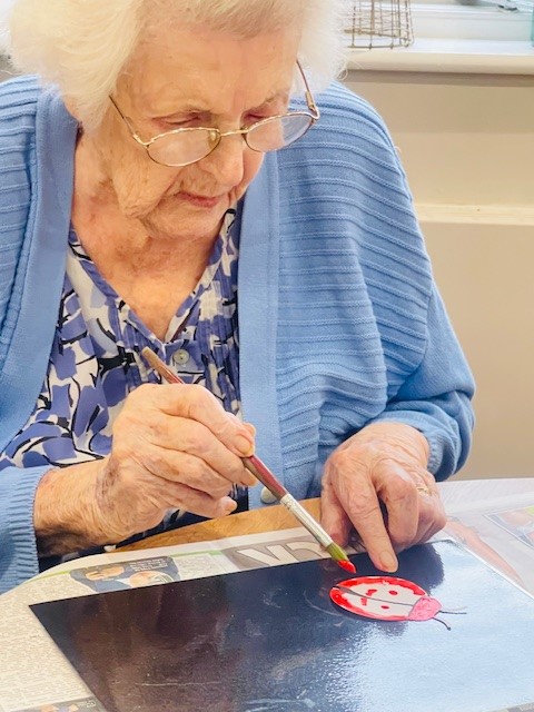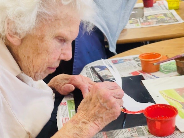 Bere Grove Care Home become a craft centre today, with the table bursting with craft bits and pieces as residents put on the their creative hats to make bookmarks.