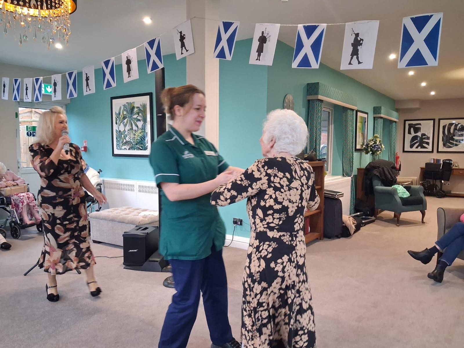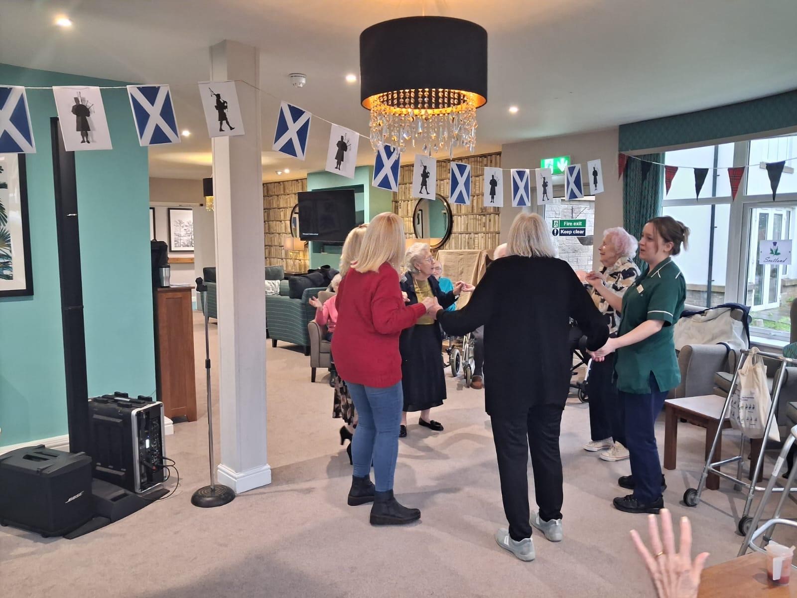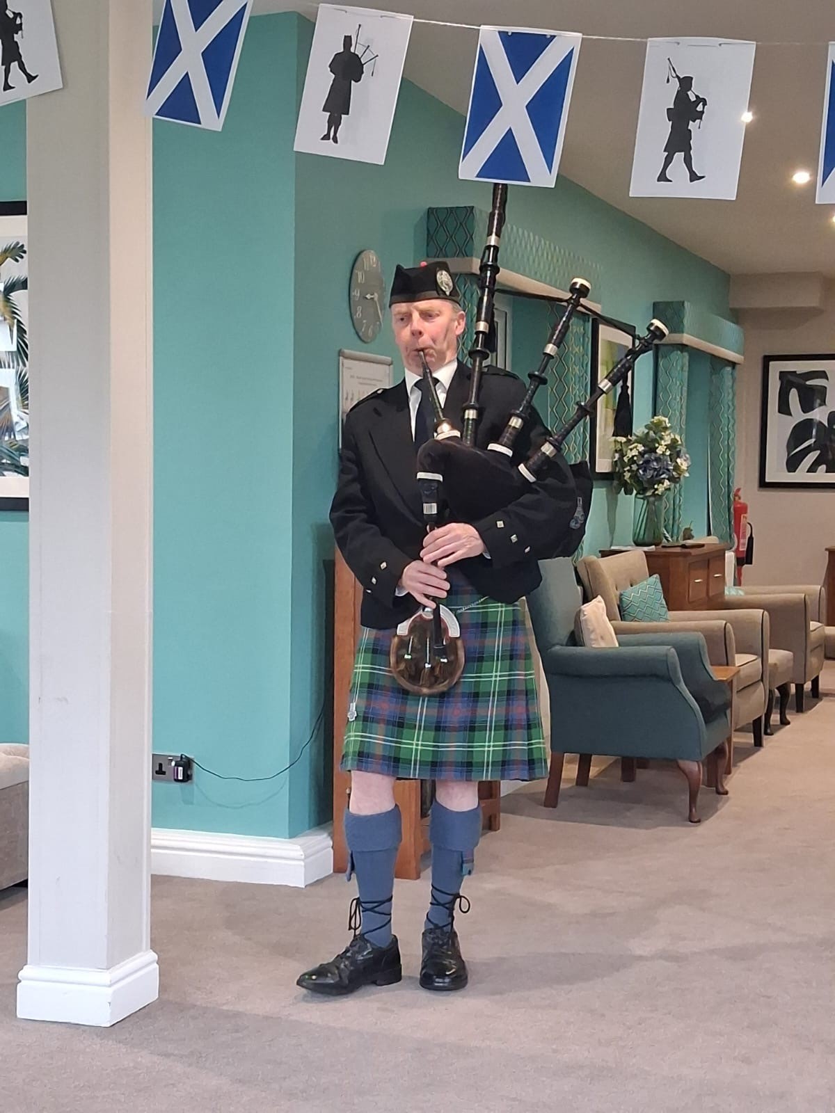 We were also joined by a fantastic entertainer who sang a variety of traditional Scottish songs, which many residents recognised and sang along to. A special highlight of the day was a visit from a Scottish bagpiper, whose music filled the home and brought lots of smiles. It was a memorable celebration that everyone appreciated and talked about afterwards.