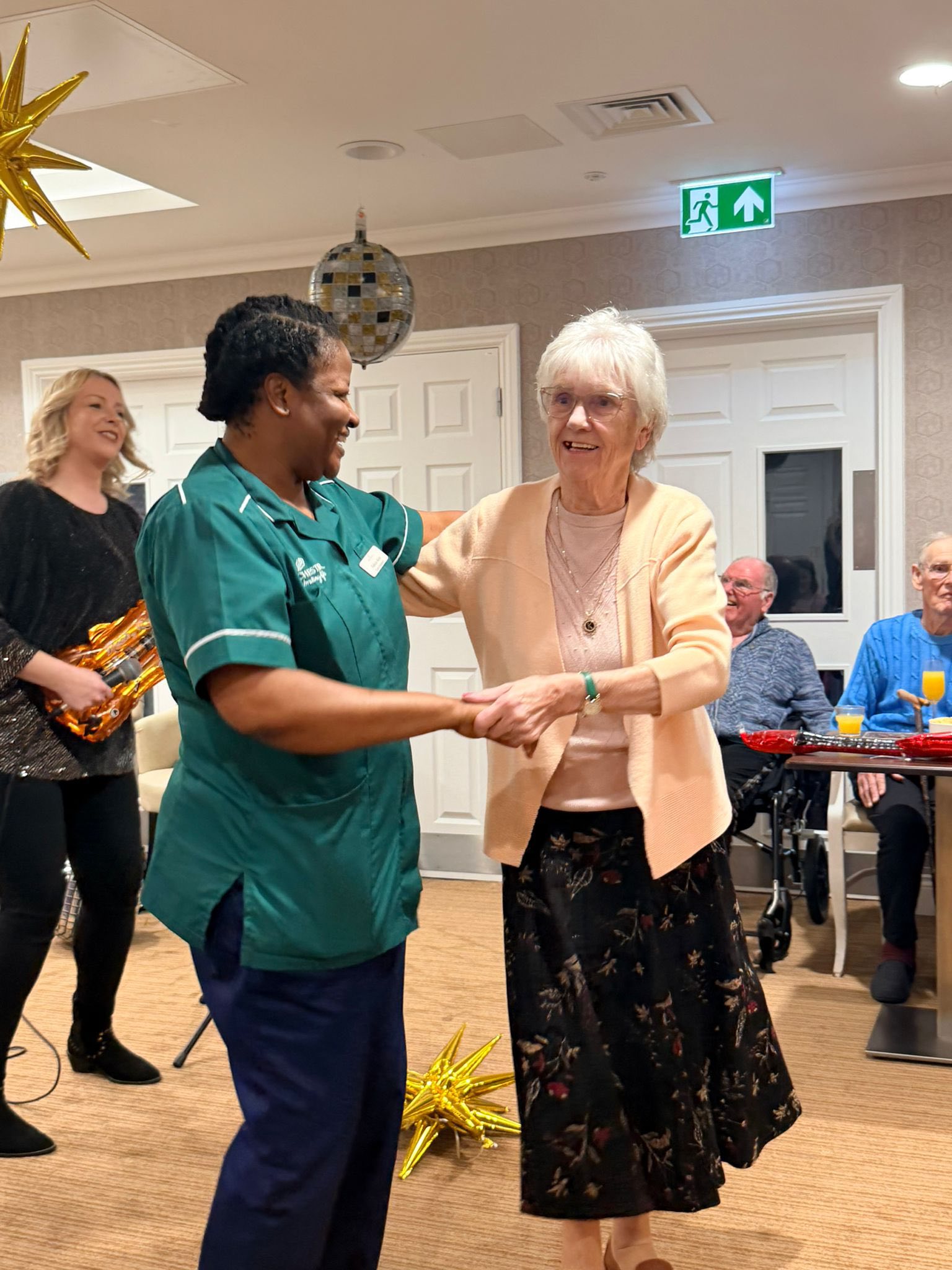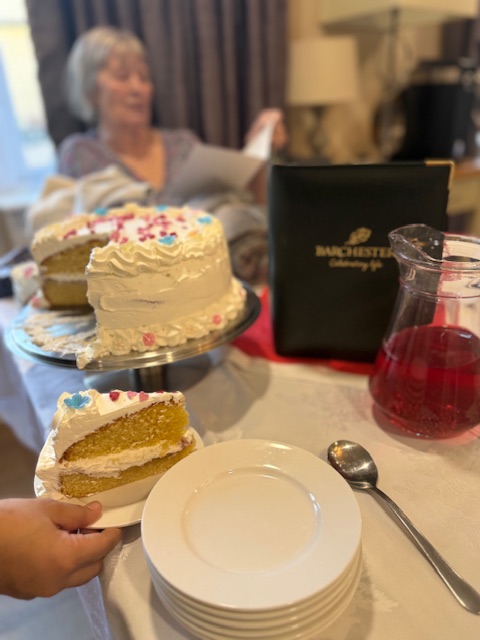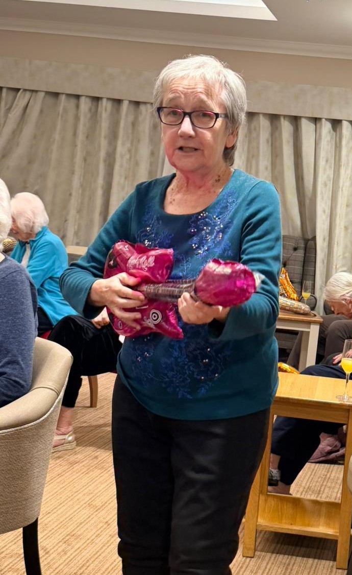 Jane was thrilled to mark this incredible milestone, surrounded by friends, smiles, and plenty of celebration. Our Resident Ambassador, Elizabeth, along with members of our dedicated team, presented Jane with beautiful flowers, a glass of Prosecco, and a delicious birthday cake, which she generously shared with fellow residents.