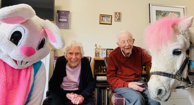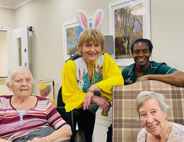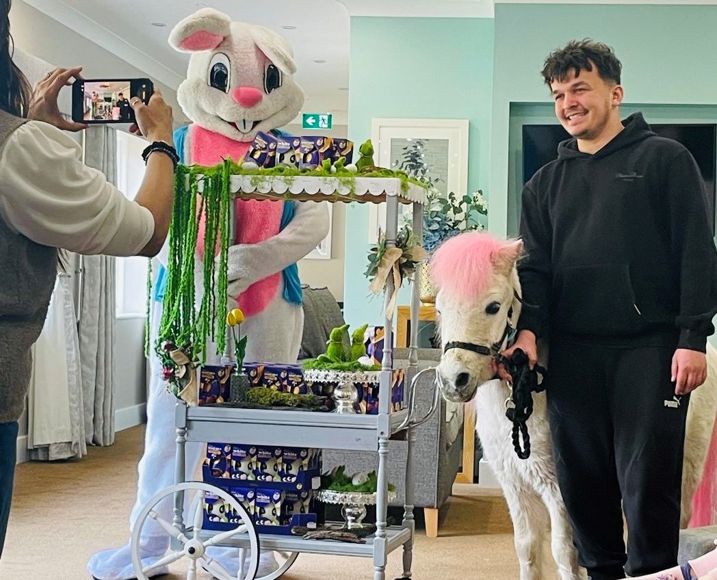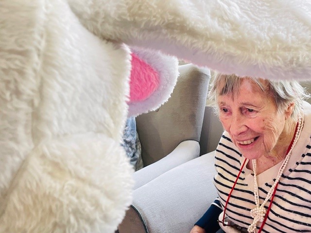 This Easter at Collingtree Park Care Home, the atmosphere was filled with excitement and joy as residents enjoyed  a delightful visit from the Easter Bunny, who brought smiles, laughter, and a touch of magic to everyone present.