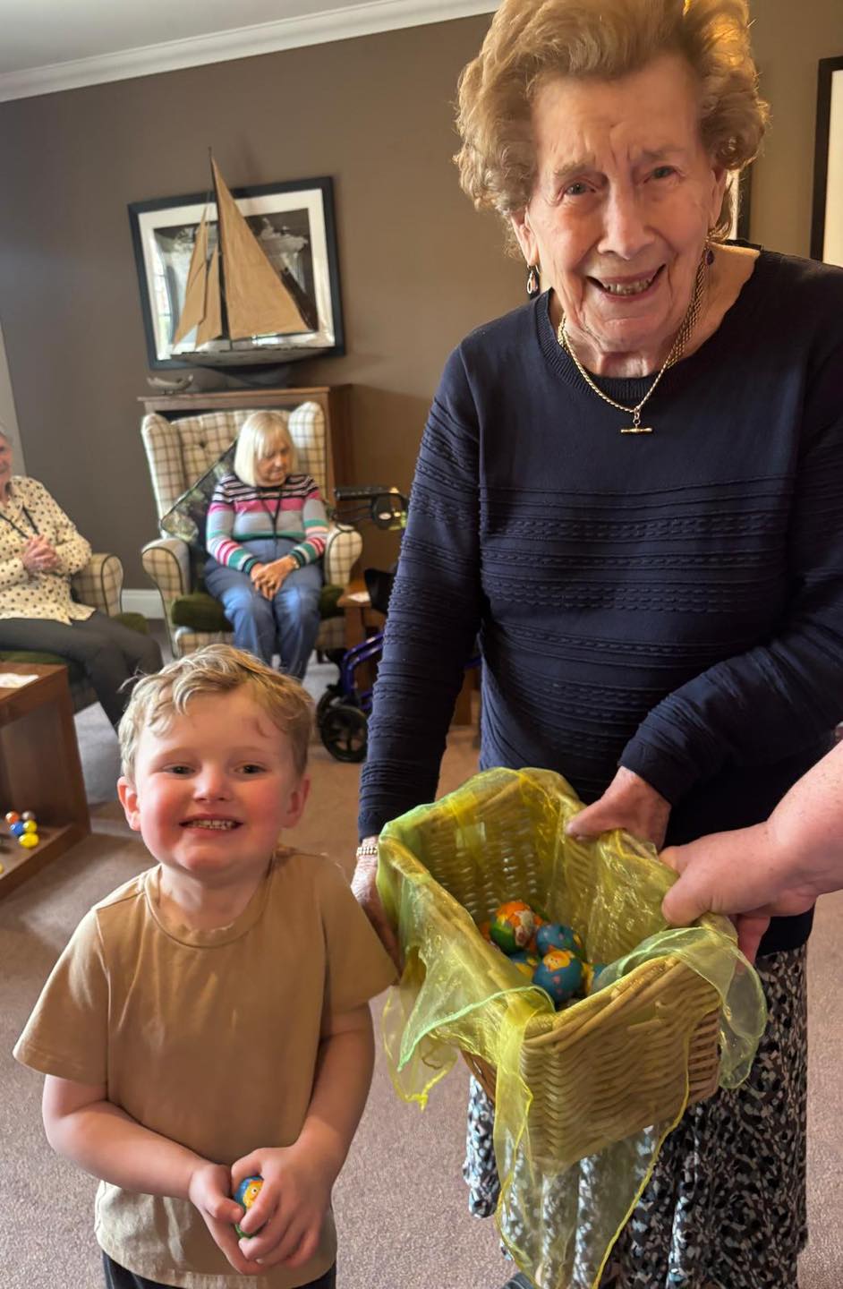 A highlight of the Easter week was a visit from Rockers and Rollers Day Nursery for a garden egg hunt followed by a cheerful singalong. Resident Rose, fondly known as `Little Gran` to her great grandson who attends the nursery, helped hand out the treats.