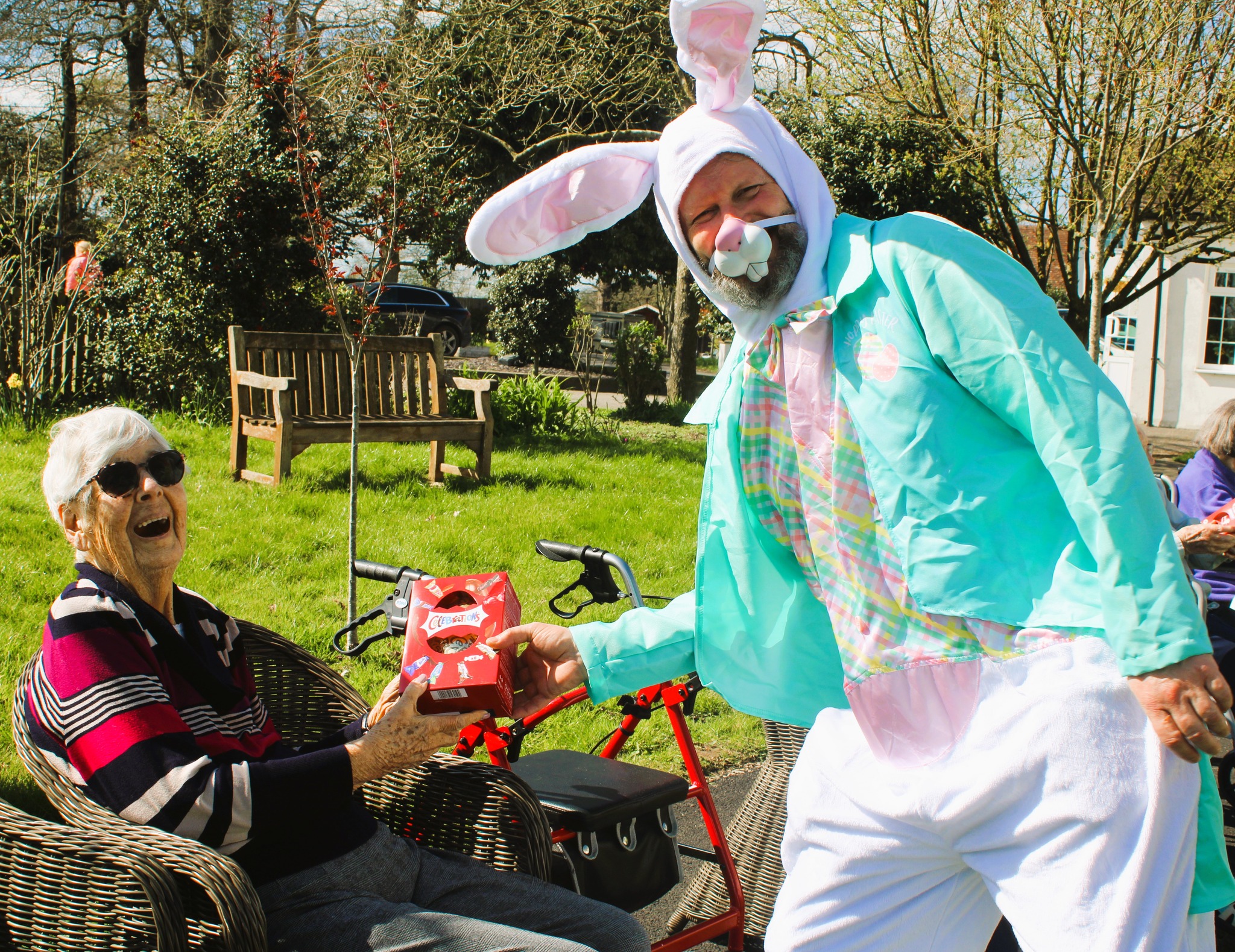 This Easter at Collingtree Park Care Home, the atmosphere was filled with excitement and joy as residents enjoyed a delightful visit from the Easter Bunny, who brought smiles, laughter, and a touch of magic to everyone present.