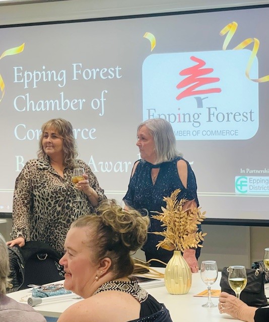 The evening grew even more special as Sharon proudly witnessed Rita Green, Committee Member and Ambassador of the Chamber receive the award for Outstanding Contribution to the Epping Forest Chamber of Commerce. It was a moment filled with shared admiration and heartfelt appreciation.