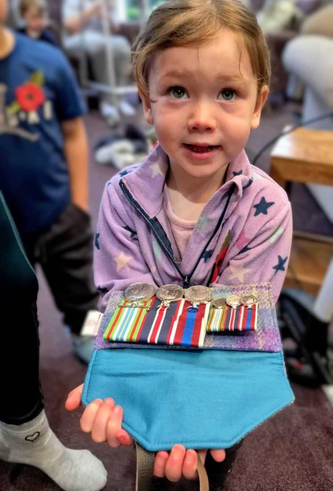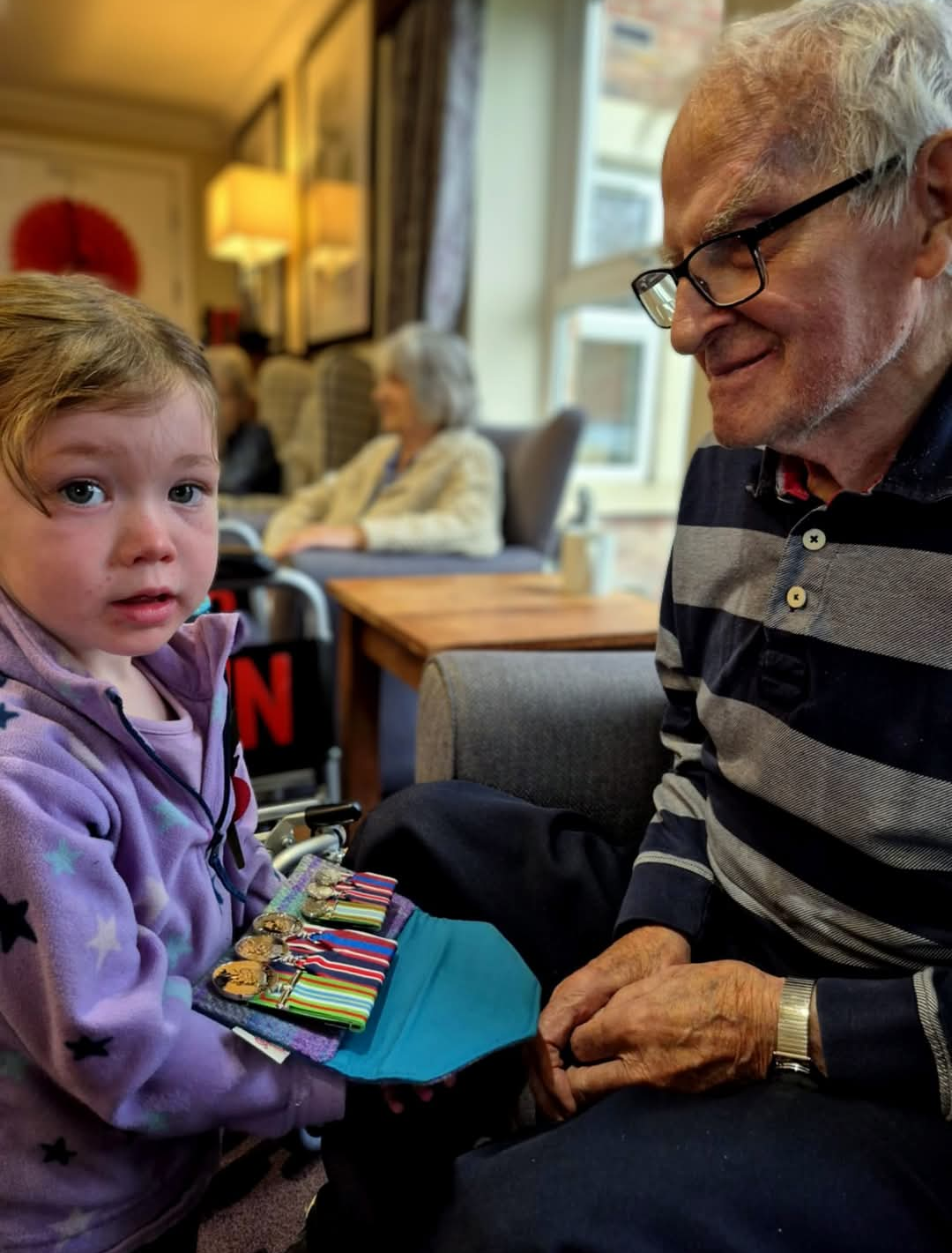 Residents were absolutely delighted; enjoying cuddles, smiles, and giggles with the little ones, which made the day even more special. A particularly touching moment came when one child proudly brought in her mum’s army medic medals to share with everyone.