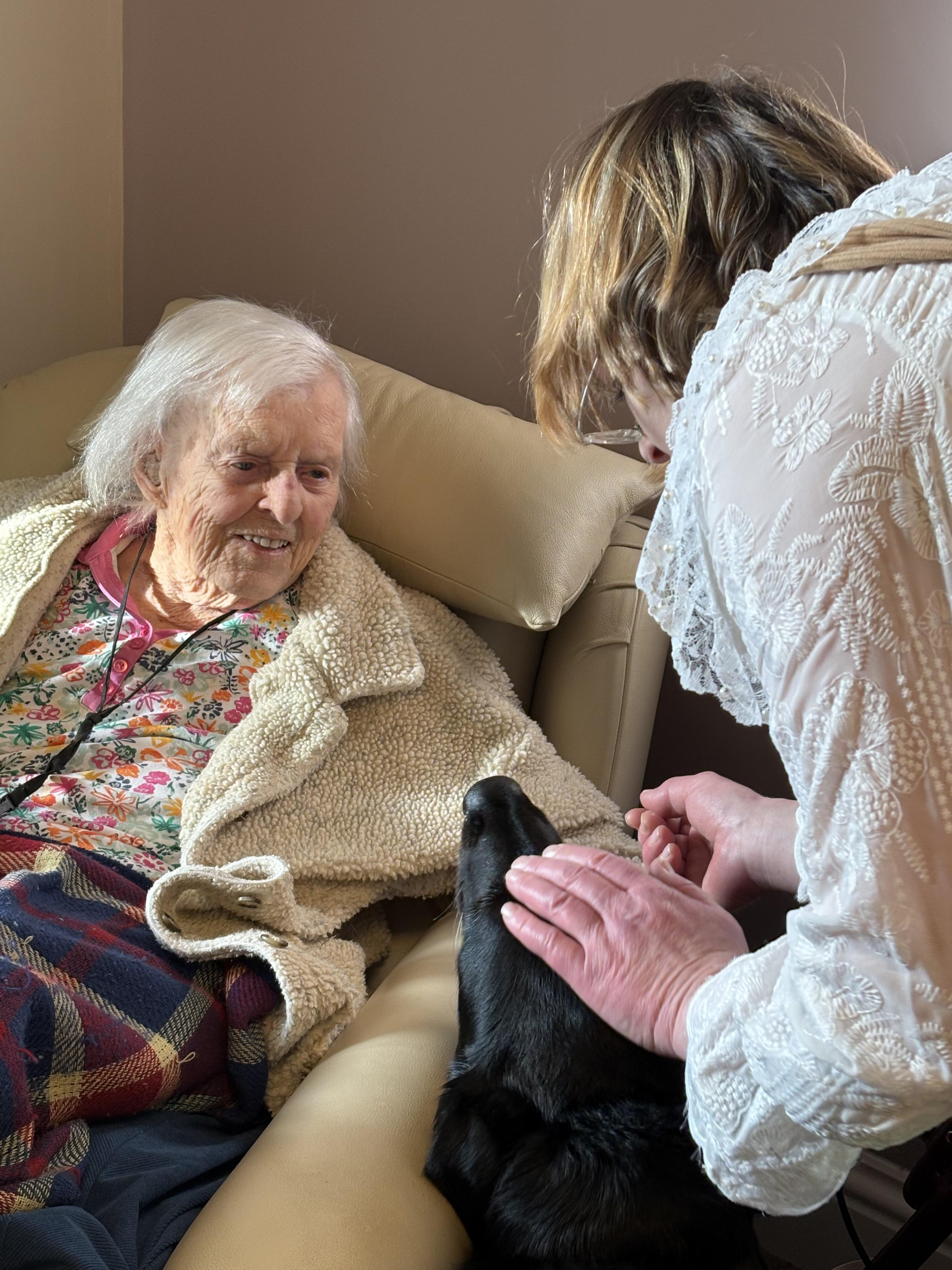 One of our therapy dog Gwen and her owner who delights everyone residents and staff alike.