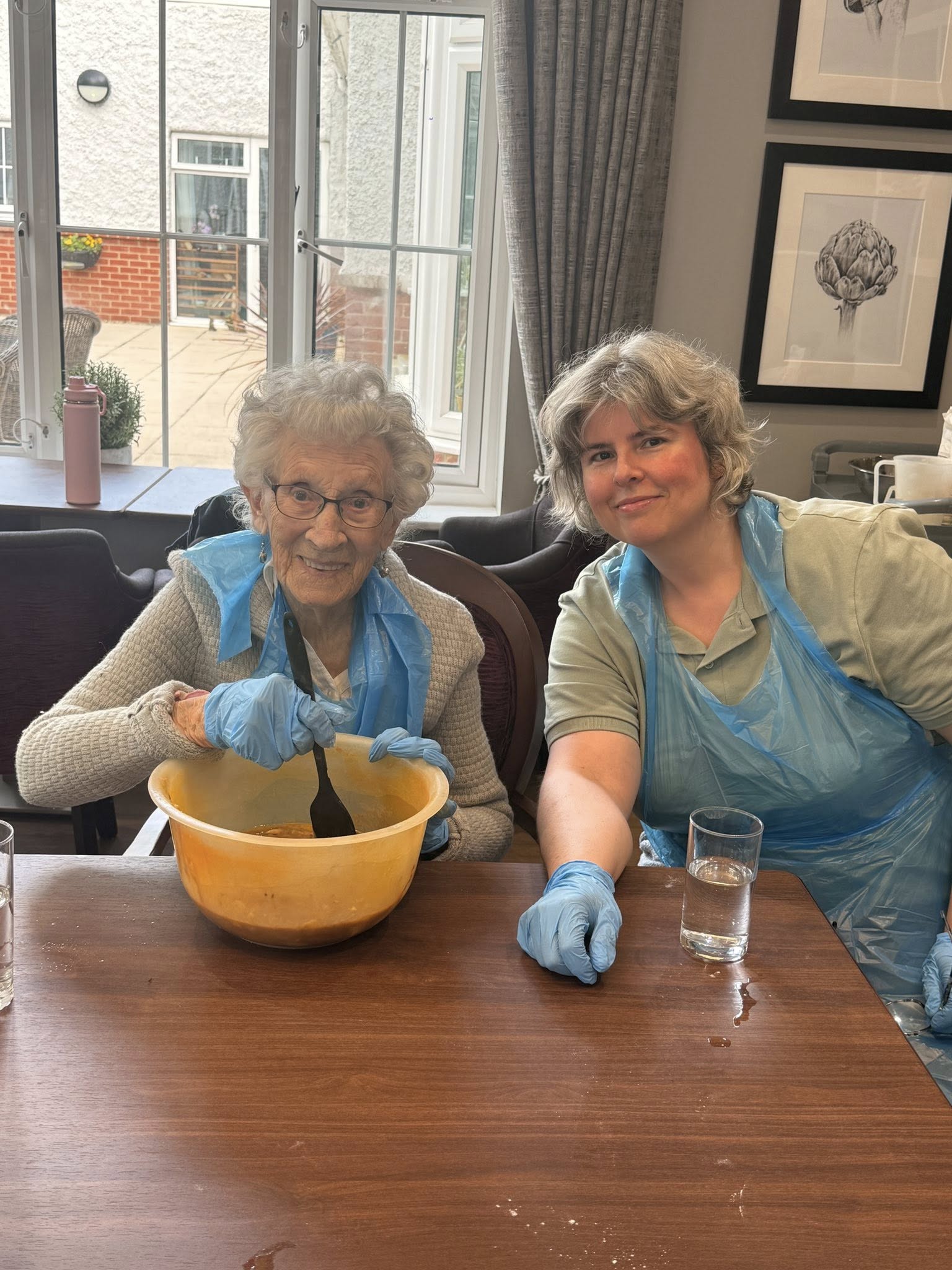 Residents recently enjoyed baking some delicious cinnamon banana bread muffins to have with their afternoon tea and biscuits. We had so much fun mashing bananas, mixing ingredients, and even helping each other along the way.