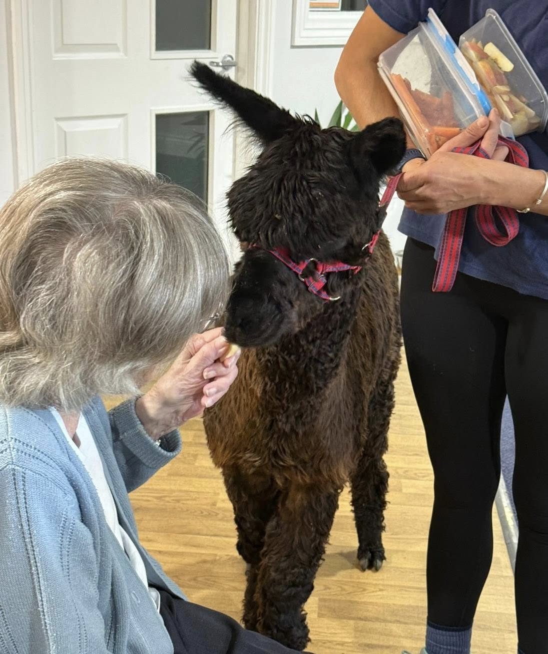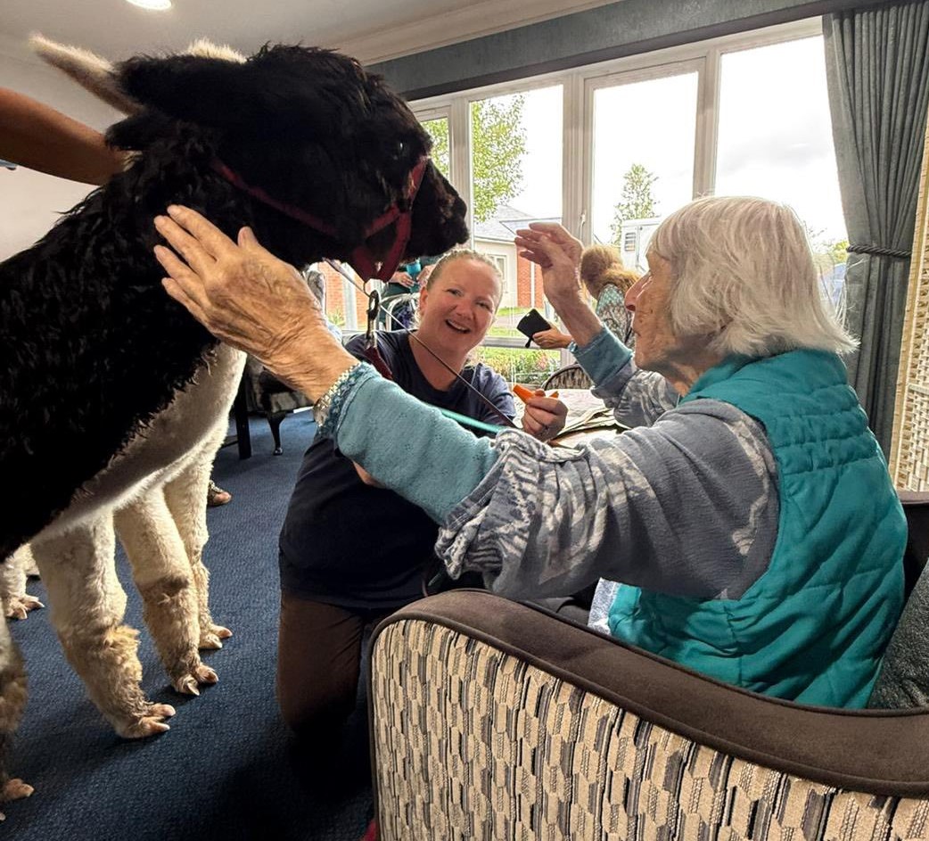 This week our Residents enjoyed a visit from some very curious Alpacas. The Residents got some hands on experience feeding their new friends and the Alpacas even visited Residents in their rooms. Alpaca lot of fun in one visit for sure.