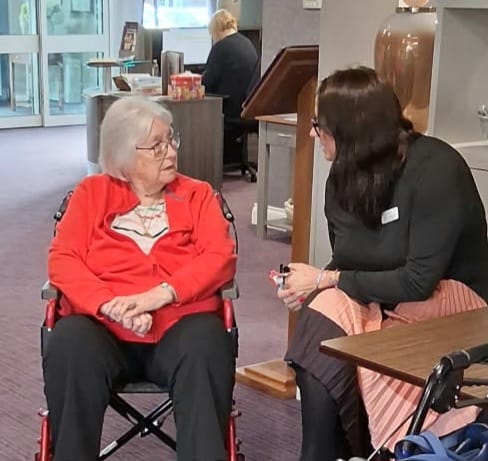 A heart-warming reunion took place as a resident who had her wish granted to reconnect with a beloved former Home Manager. Mary Heyward, who has been part of the home family for over a year, expressed her desire to visit Katie Wilkinson, the previous temporary Home Manager who had left a lasting impression on her. Thanks to the thoughtfulness, General Manager, Joanna Mosses, Mary and a group of residents set off on a delightful morning trip to see Katie at Bayleaf Care Home, in Huntingdon, where Katie is General Manager.