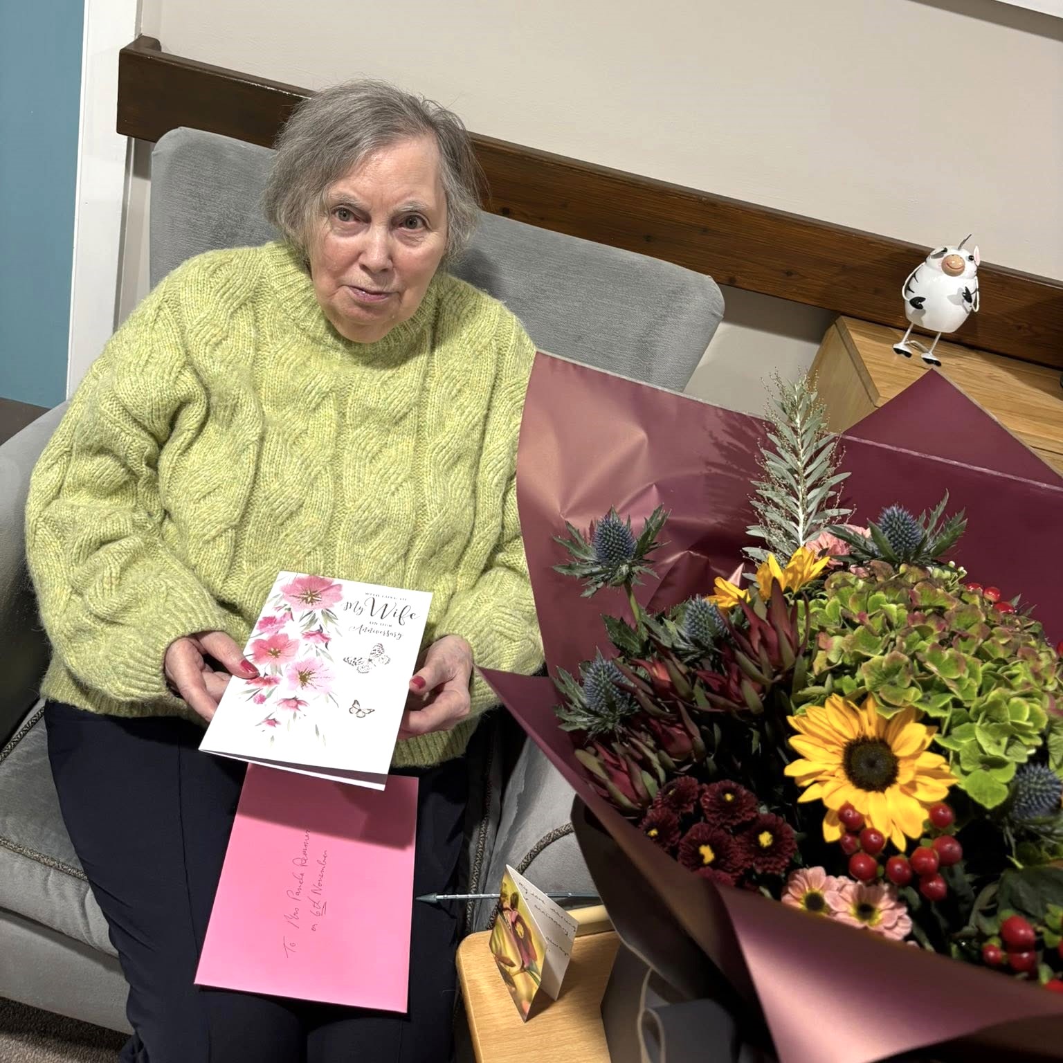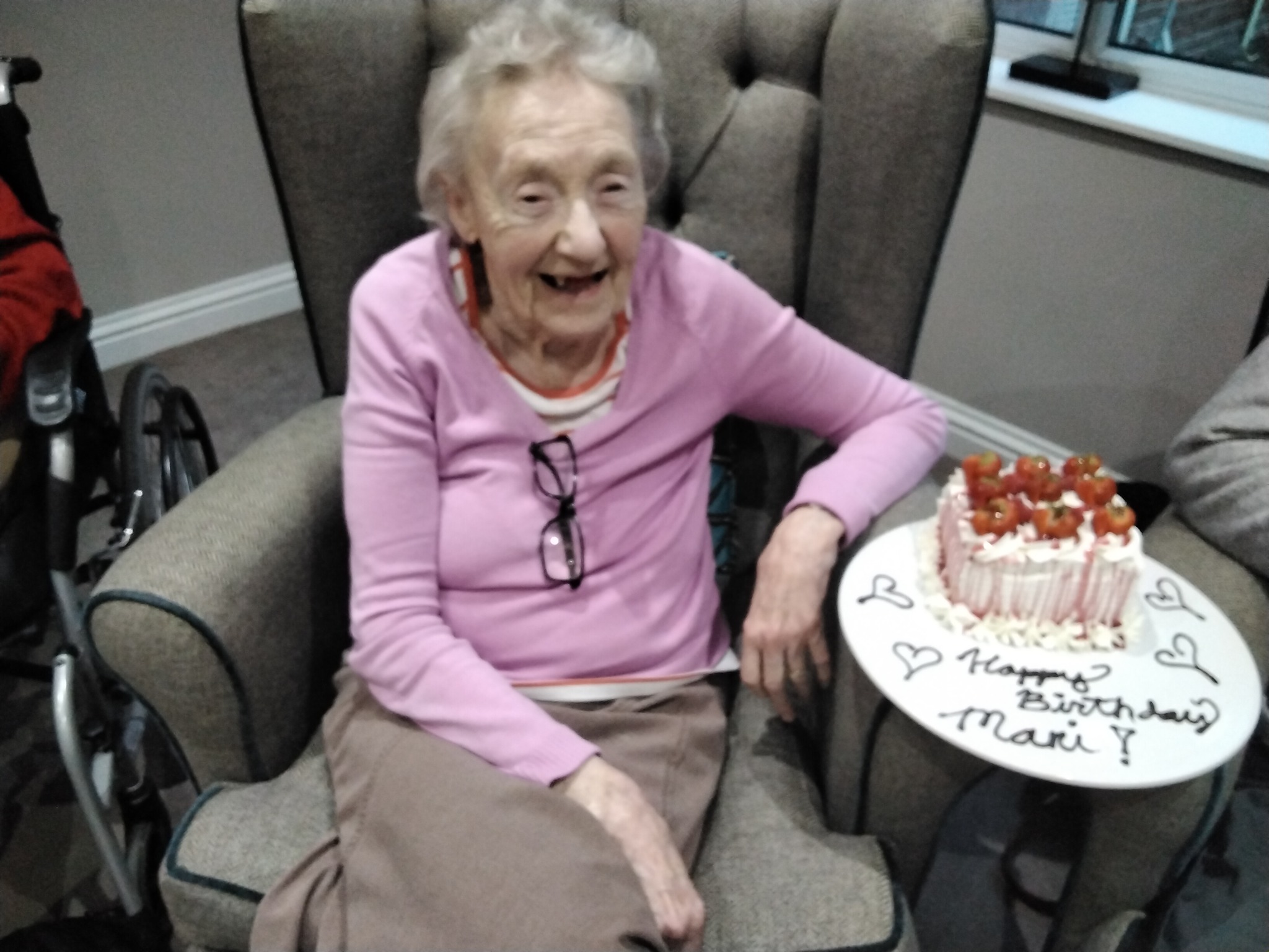 Her fellow residents and staff sang 'Happy Birthday' to her as she was presented with a wonderful cake. This was made in house by our talented Head chef John.