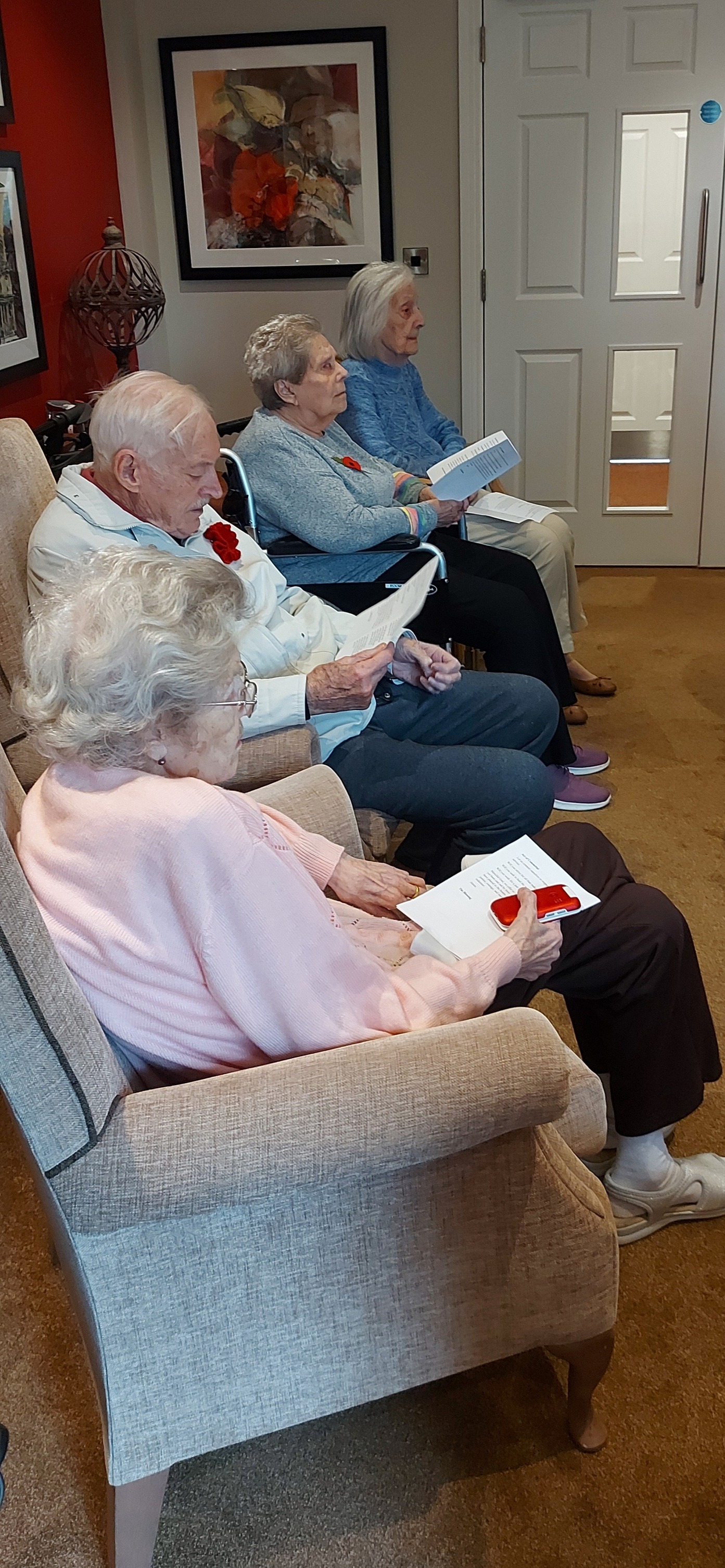 Activities Co-ordinator Tina said: “The performance was wonderful, the residents, many of whom have vivid memories of the era, for them it was deeply moving. A real touching element of the service was the tribute created by the pupils, they created handcrafted poppies that were then planted in the school field at the end of the service. The poppies had poignant words written on them by the children, it was simply a powerful and tangible way to honour the fallen.”