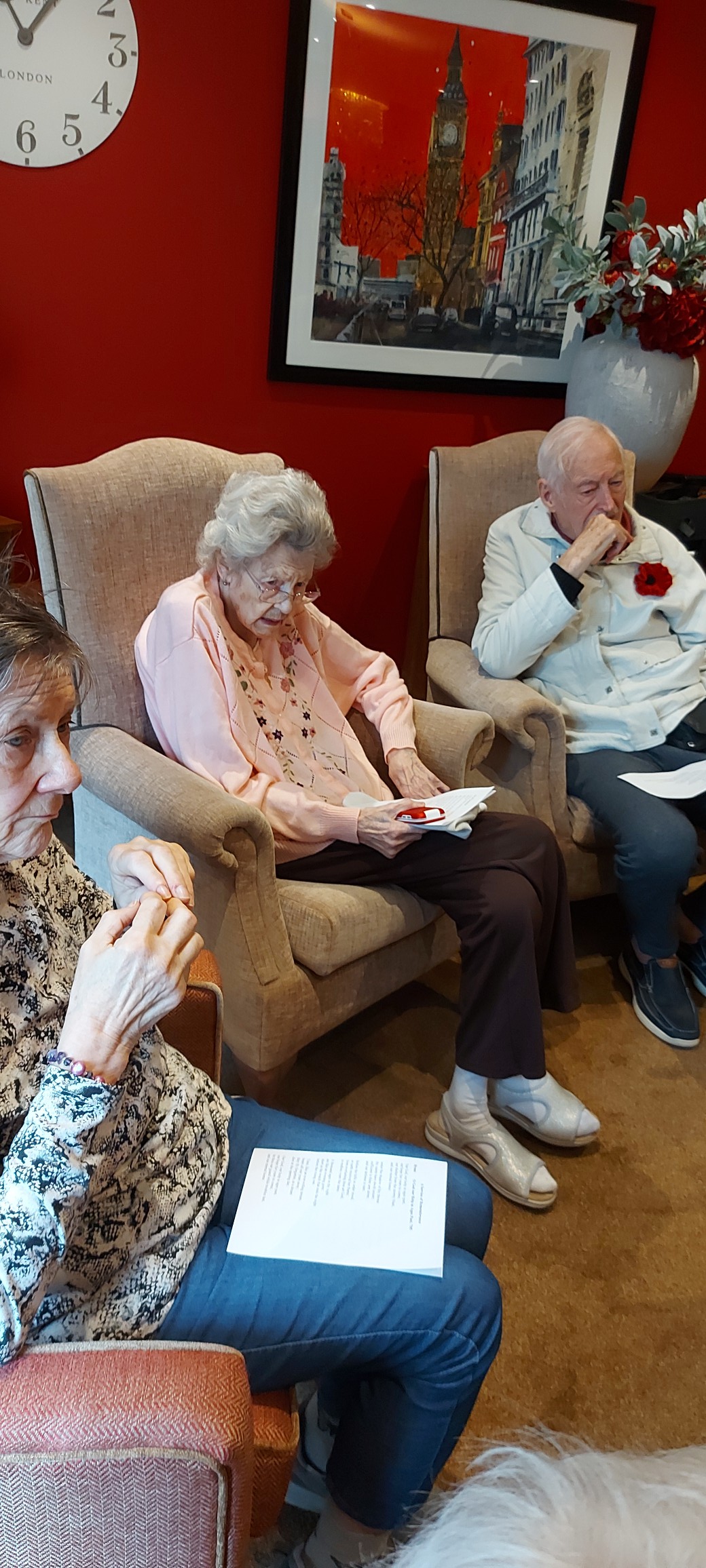 Sue Fender kindly attended Melbourn Springs this morning to hold a heartfelt Remembrance Service to honour and remember the brave men and women who served and sacrificed for our freedom. Residents, staff, and friends came together, said prayers and sang Hymns and to reflect, share memories, and observe the 2 minute silence, paying tribute to those who will never be forgotten. Thank you to all who attended..