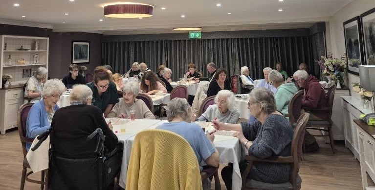 Guests enjoyed live Christmas music, mulled wine, mince pies and delicious homemade cakes prepared by our hospitality team. Classic fayre favourites including a raffle, bottle tombola and lucky dip helped raise £200 for our Residents’ Fund, supporting special life enrichment activities throughout the year.