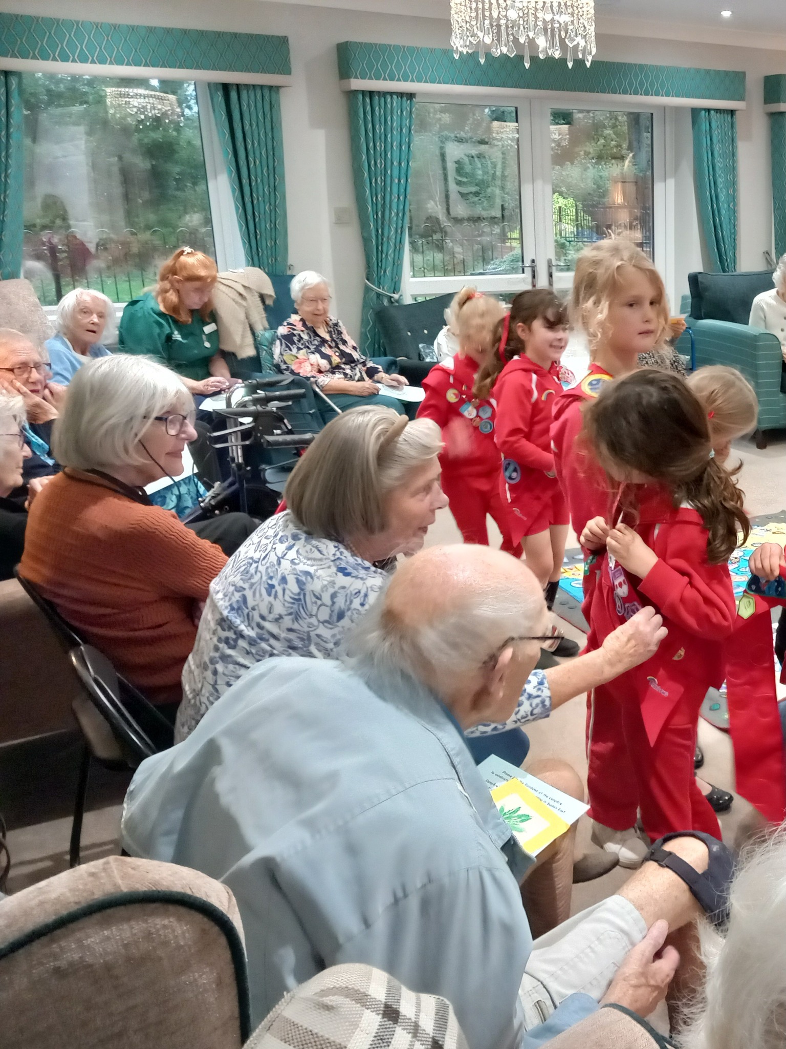 We had such a lovely afternoon when the Battle Rainbows ( Girl Guides) came to see us recently . We heard all about the things they've been doing and they even treated us to a little song they've been learning . Many of our residents were able to tell their own story of being in the Girl Guides . The Rainbows are the youngest of the Guides being between 4-7 years old and do fun activities such as singing, games and making things . The residents loved chatting to the girls and we can't wait to see them again soon.