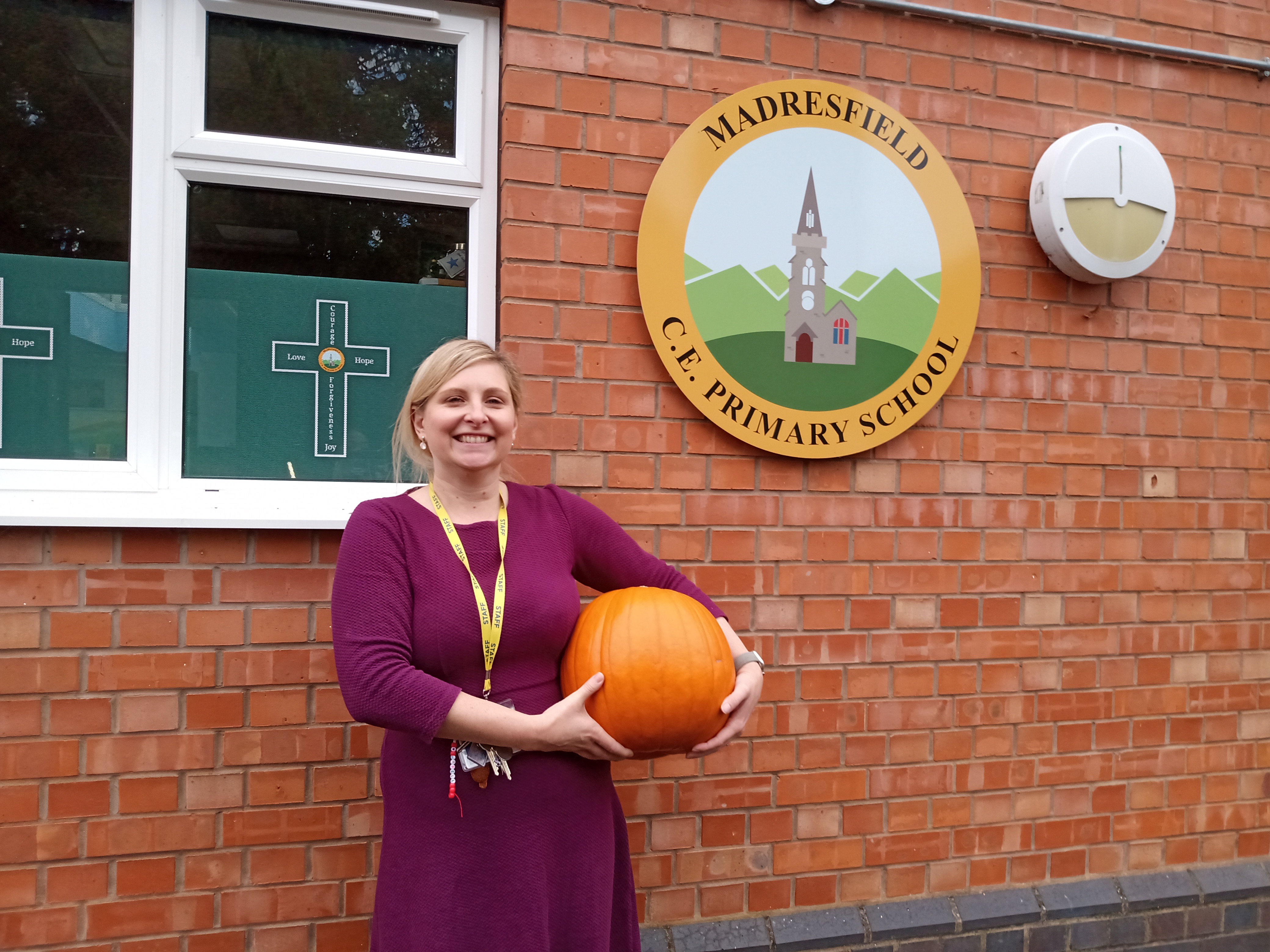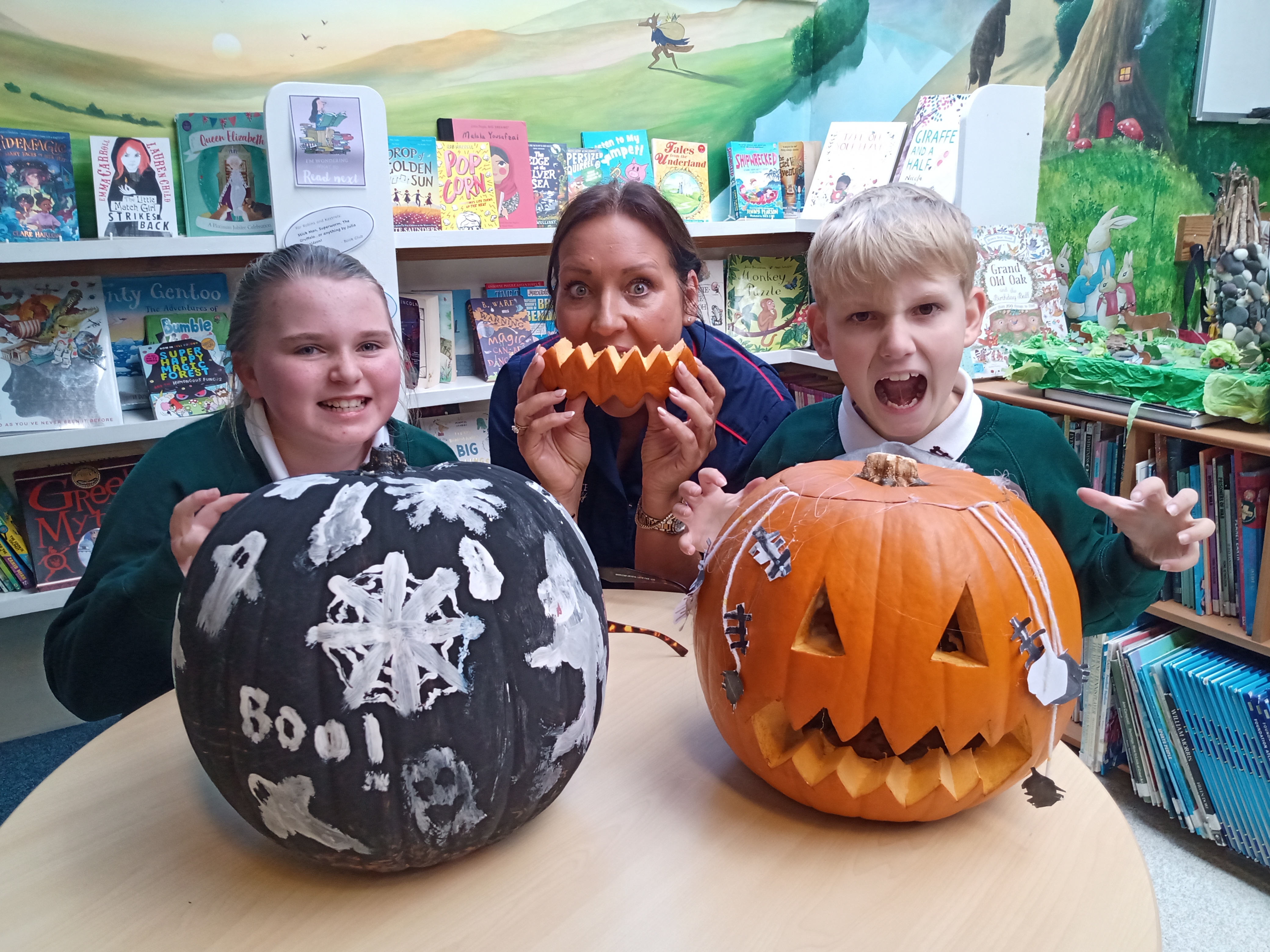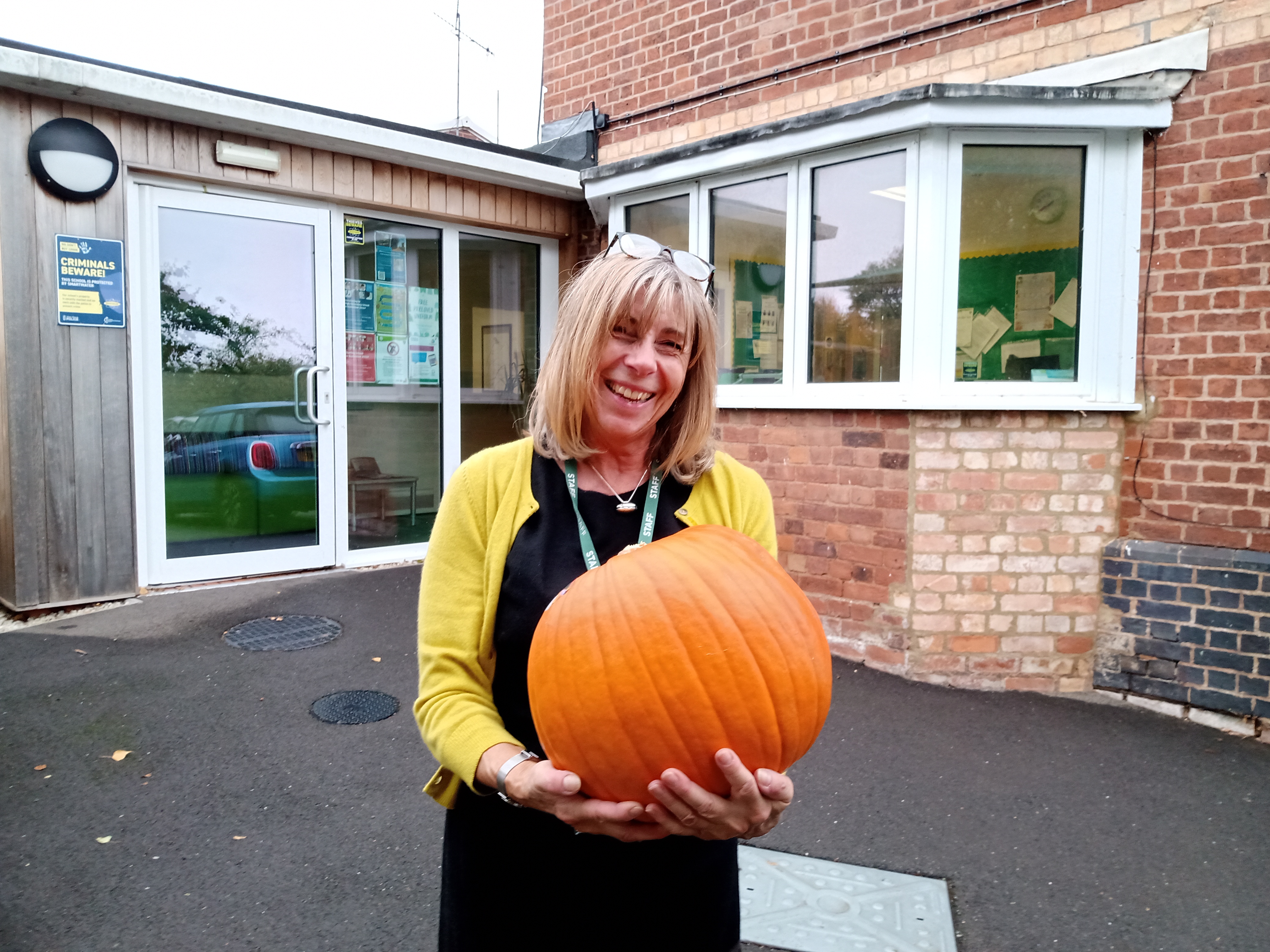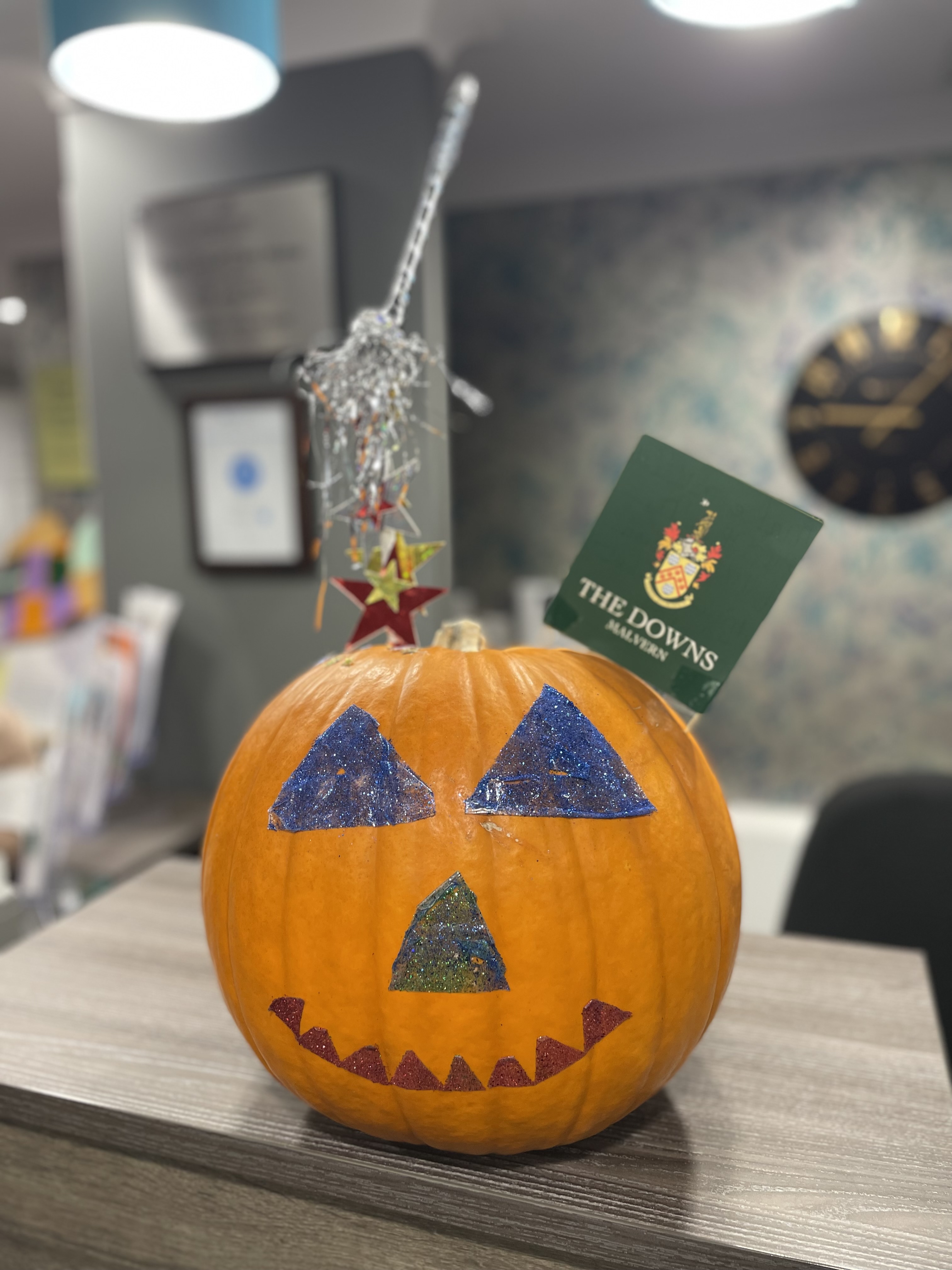 Powick C of E school decided to write messages on home made leaves about what autumn means to them and cover their pumpkin, and Lesley and her husband Hugh read through each one! The Downs School in Colwall, made their Pumpkin magical, completing it with a magical wand and lastly, Madresfield Cof E made two goulish pumpkins complete with cobwebs and spiders and scary monsters!
