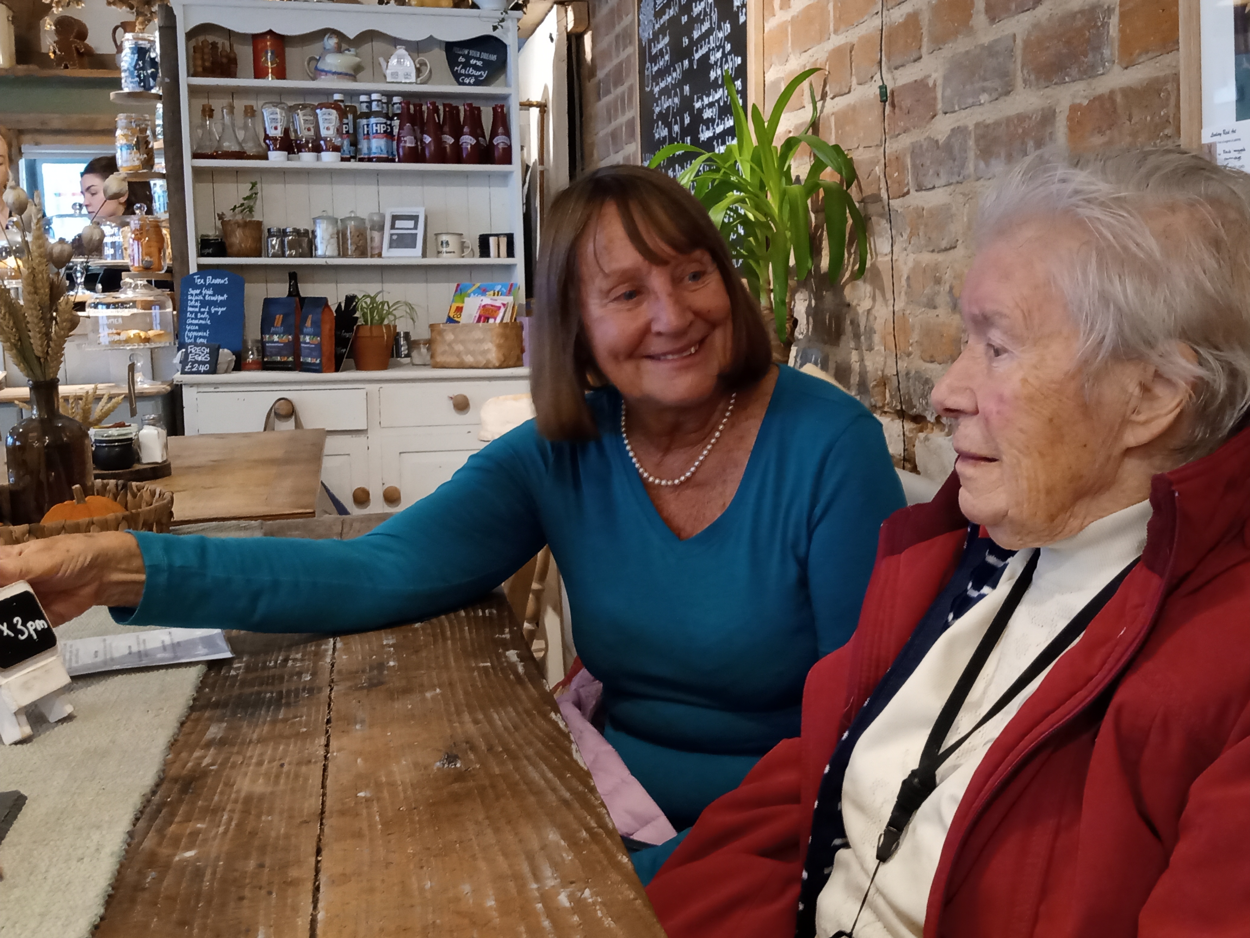 Off our residents go again today, and this time to enjoy the countryside and marvel in the wonderful changing autumn season colours. Having our own minibus gives our residents so much freedom to enjoy life as they want to and of course, sample the local food and services we are lucky to have closeby. Here is Susan and Denise enjoying tea and cake, and Susan has hailed this one of her favourite 'spots' as she said, "they use 'REAL' china which makes drinking tea so much better!" We totally agree Susan!