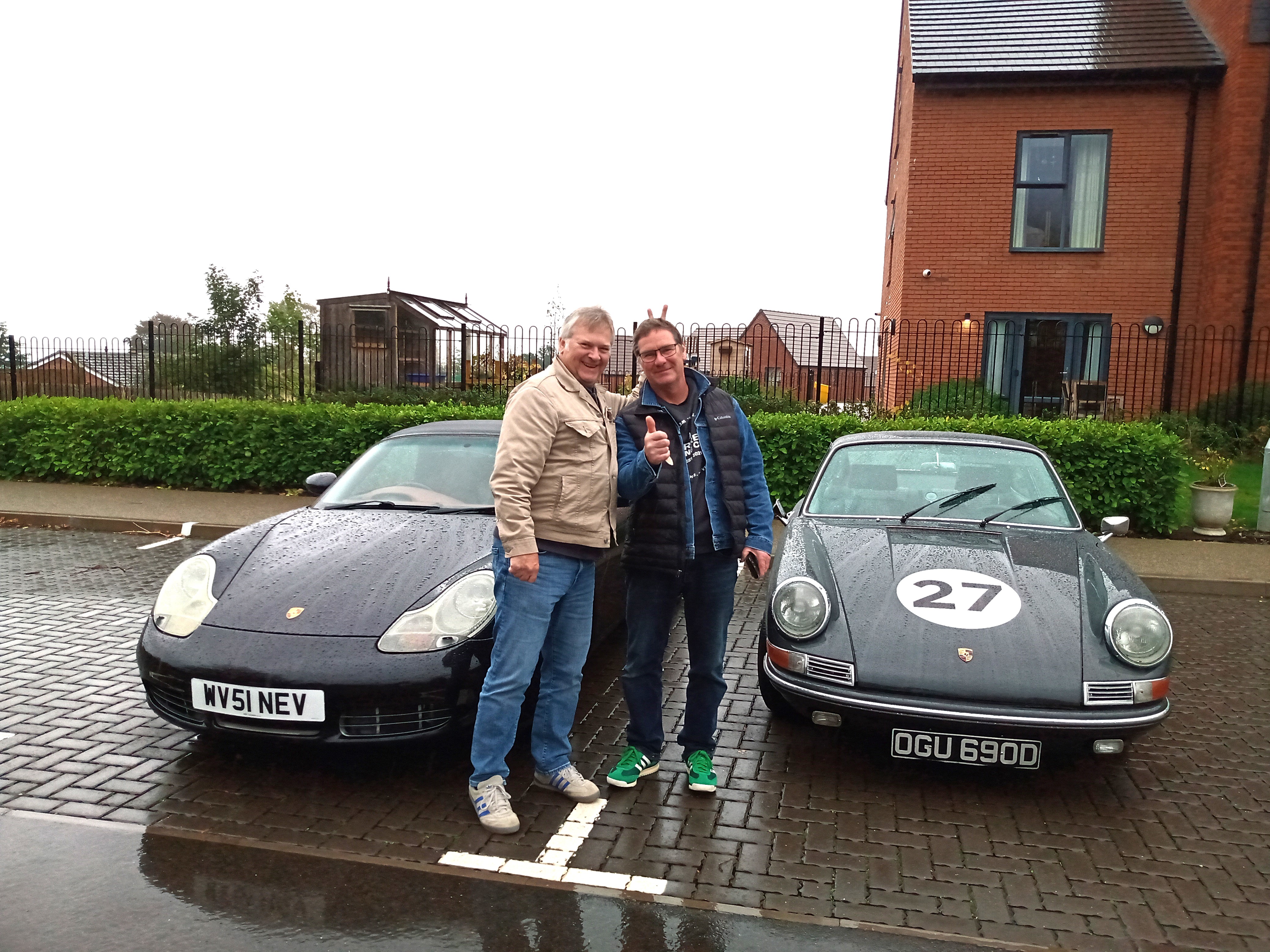Both Chris and Andy are proud owners of the elite German car brand, Porsche, and had never been to the care home’s classic car Sunday event that had been running throughout the spring and summer. Sadly the weather on Sunday was very disappointing with constant rain, but our residents enjoyed viewing their cars from the dry and warm viewing balconies. Safely inside, the boys enjoyed bacon baps and refreshments. Pictured (L-R): Chris Marter and Andy Marter