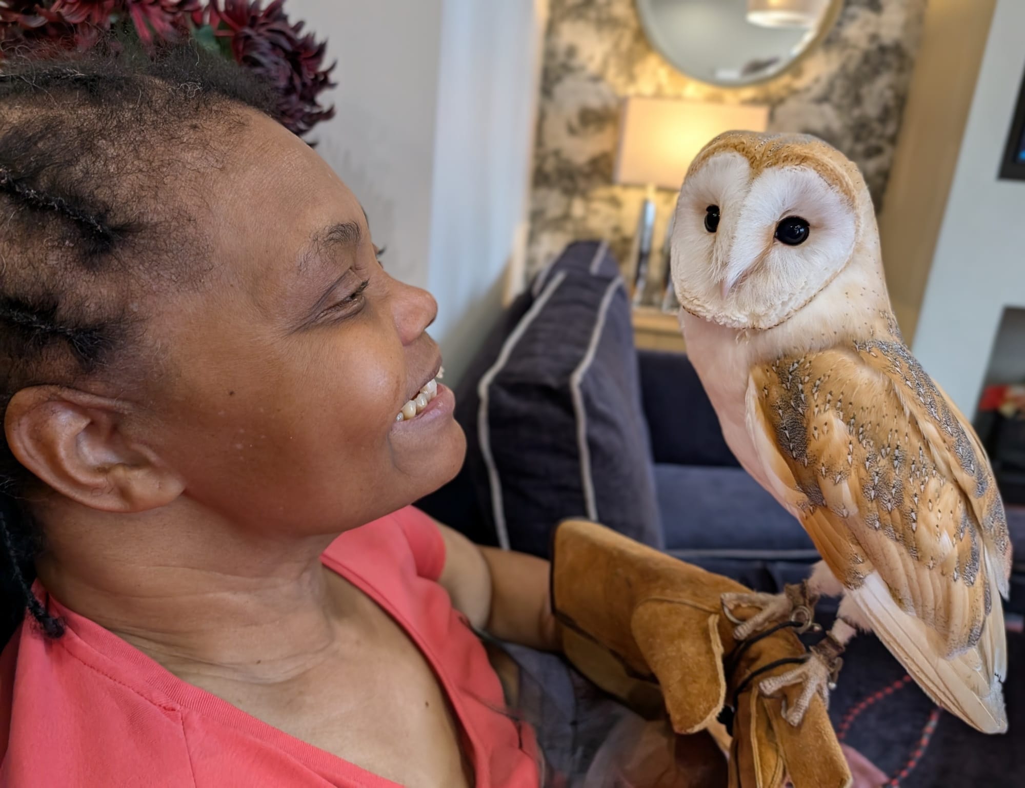 We had a delightful visit from Performing Pets who bought along Bonzo the Barn Owl. We last met Bonzo when he was a baby so it was really nice to see how much he has grown!