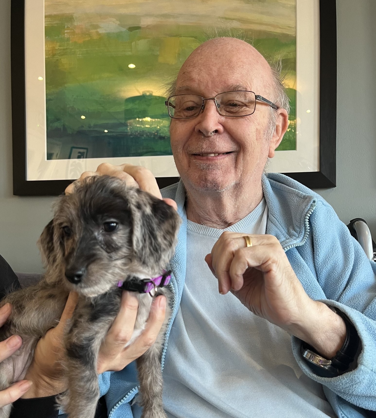 Animal Therapy is one of our resident's most treasured activities and is based on the scientific principle that human-animal interactions reduce stress, anxiety, raise oxytocin which helps you feel calm and is a great mood lifter.