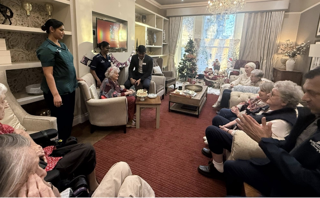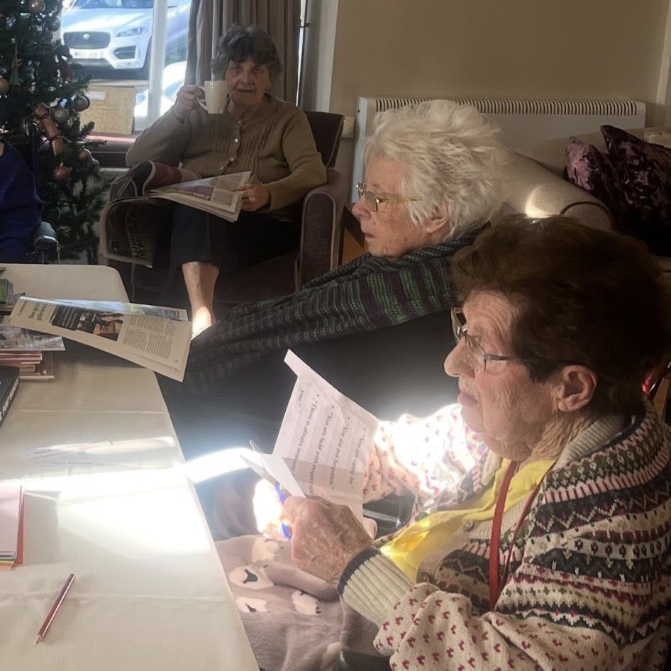 Dressed in cheerful Christmas jumpers and festive outfits, they filled the home with beautiful carols and seasonal songs. Residents joined in with smiles and tapping feet. Afterwards, everyone enjoyed cake, tea, and plenty of Christmas cheer.