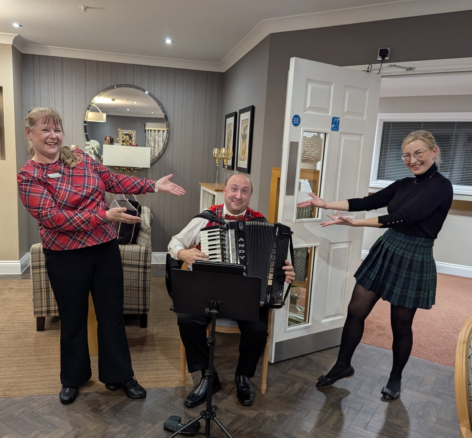 Upton Bay’s Burns Night was magical. Residents, family & friends enjoyed Chef Alain’s delicious supper ,with stunning decorations by Karen .Bob G & family read the Address to the Haggis. Andy’s accordion ,sparked singing & dancing . Karen led the whiskey toast , ending with Auld Lang Syne .