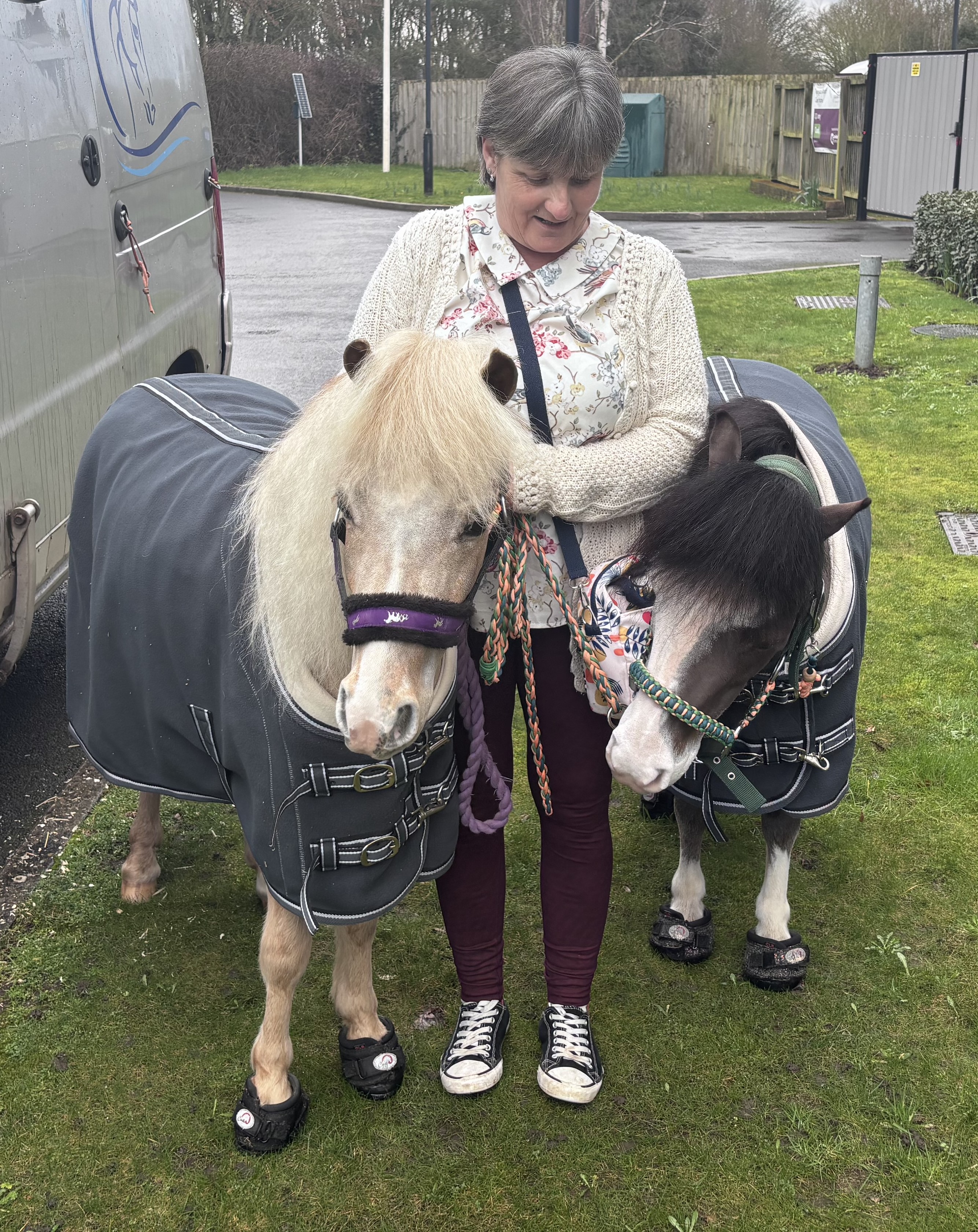 Both ponies are owned and rigorously trained by Brenda Depear who is a licensed substance abuse and rehabilitation counsellor who also specializes in traumatic brain injuries and Dementia care. The ponies provide comfort and support to all of her clients and love visiting care homes.