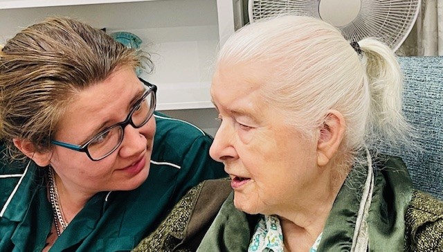 Mother's Day at Oaklands was a full weekend of celebrations. Residents got involved with making flower arrangements for others cared for in their rooms and unable to do it themselves and then shared the joy of delivering goodies to them. As you can see, Kate loved pushing the trolly and having purpose in her day.