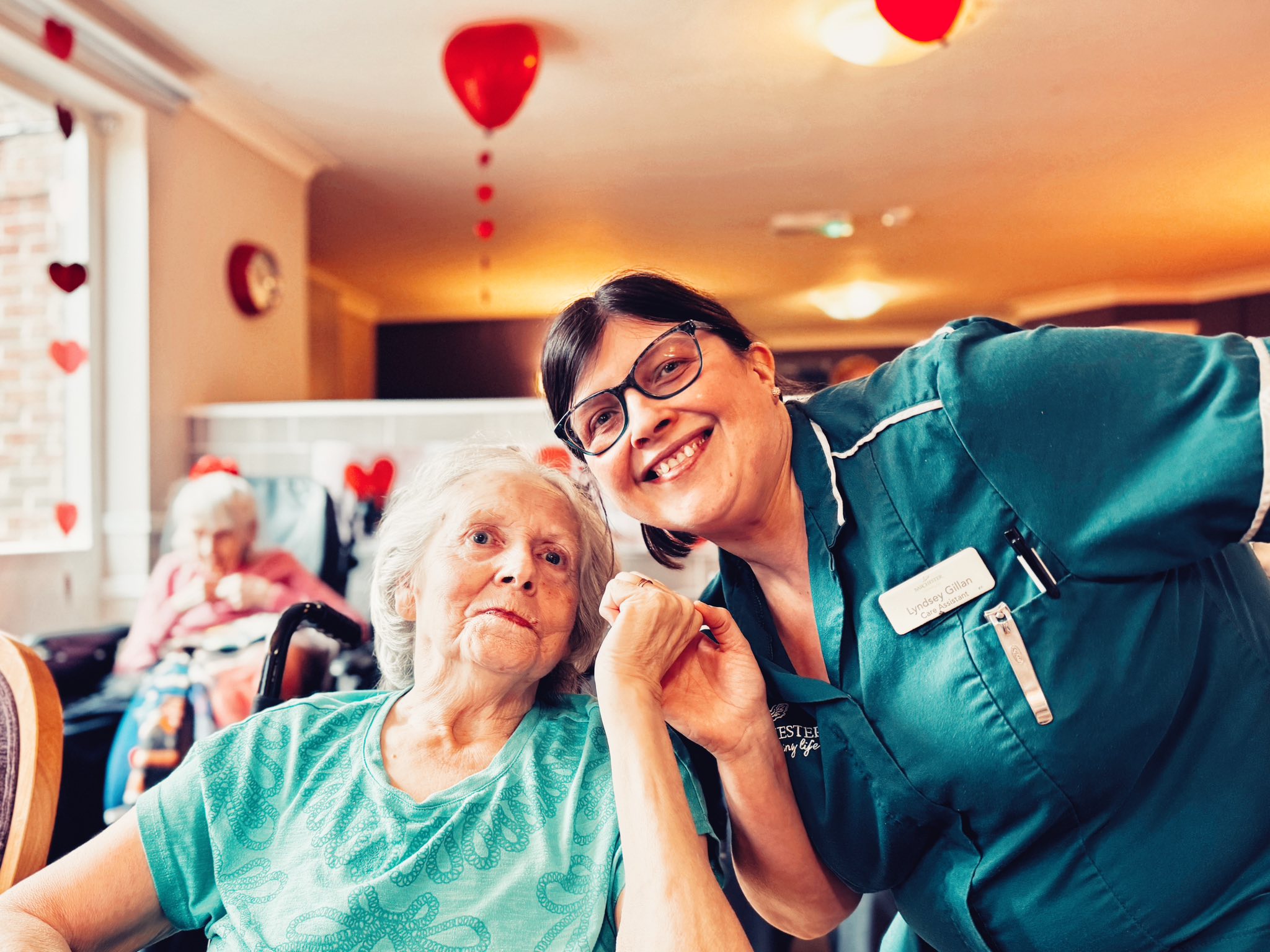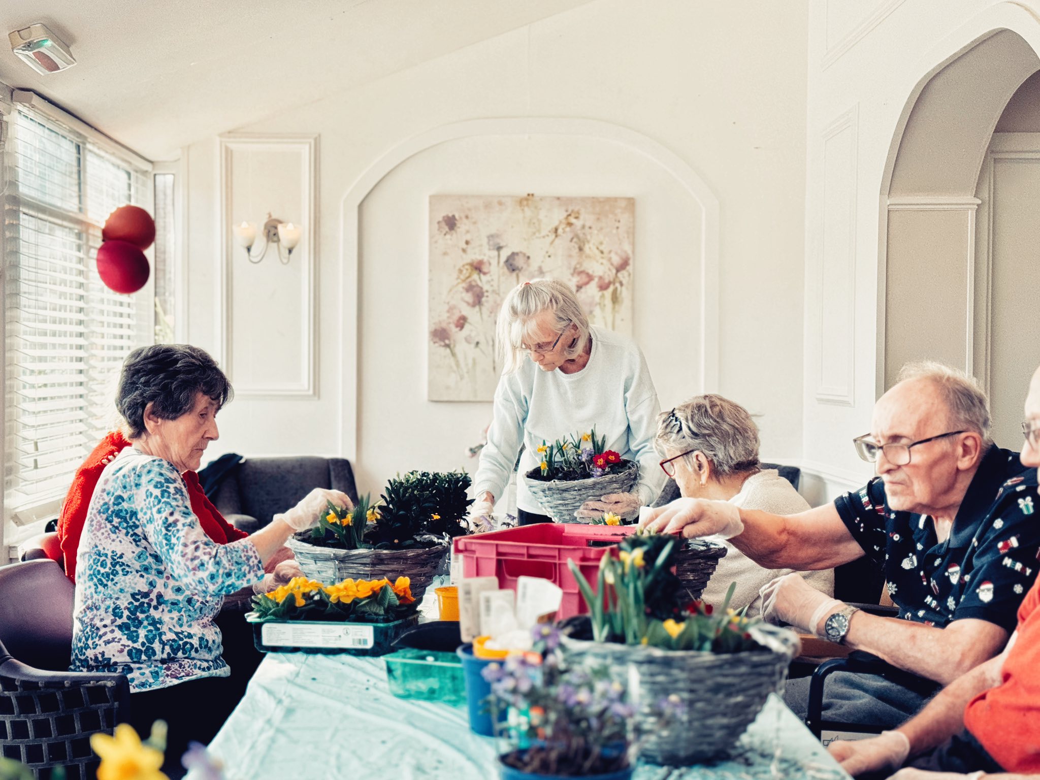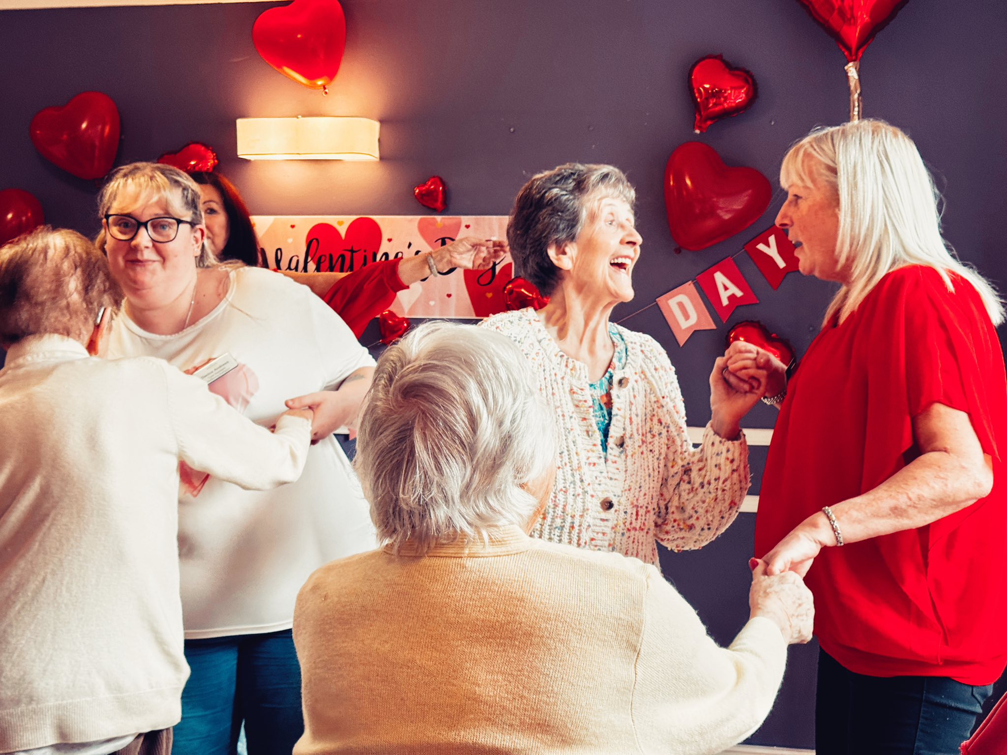 For those who were unable to attend, we took the balloons to them in their rooms, and they enjoyed one-by-one playing balloon tennis with members of staff. Whether the residents were at the party or in their rooms, they were engaging socially, chatting, building relationships with staff and each other and, without even realising it, they were also taking part in exercises.