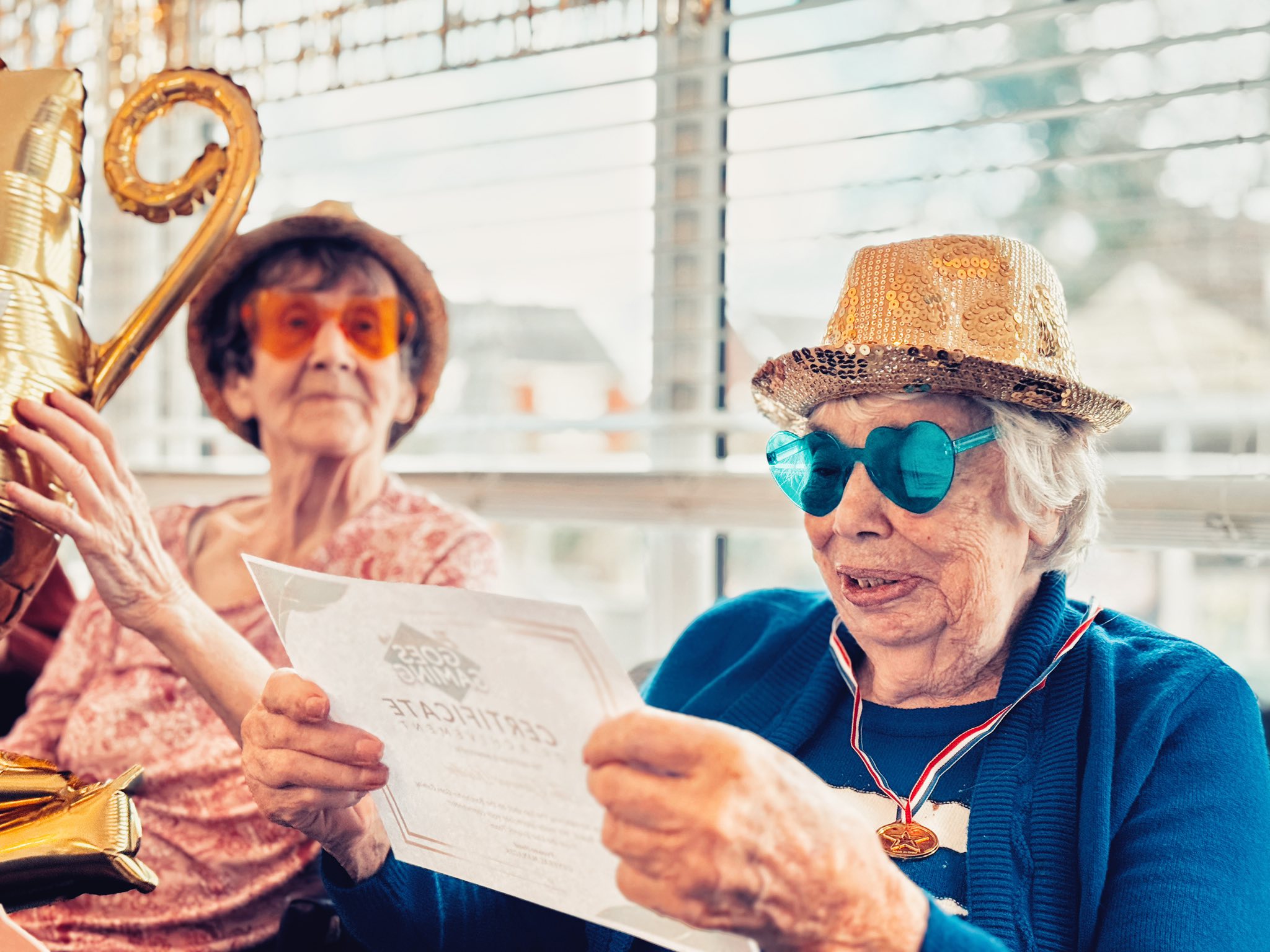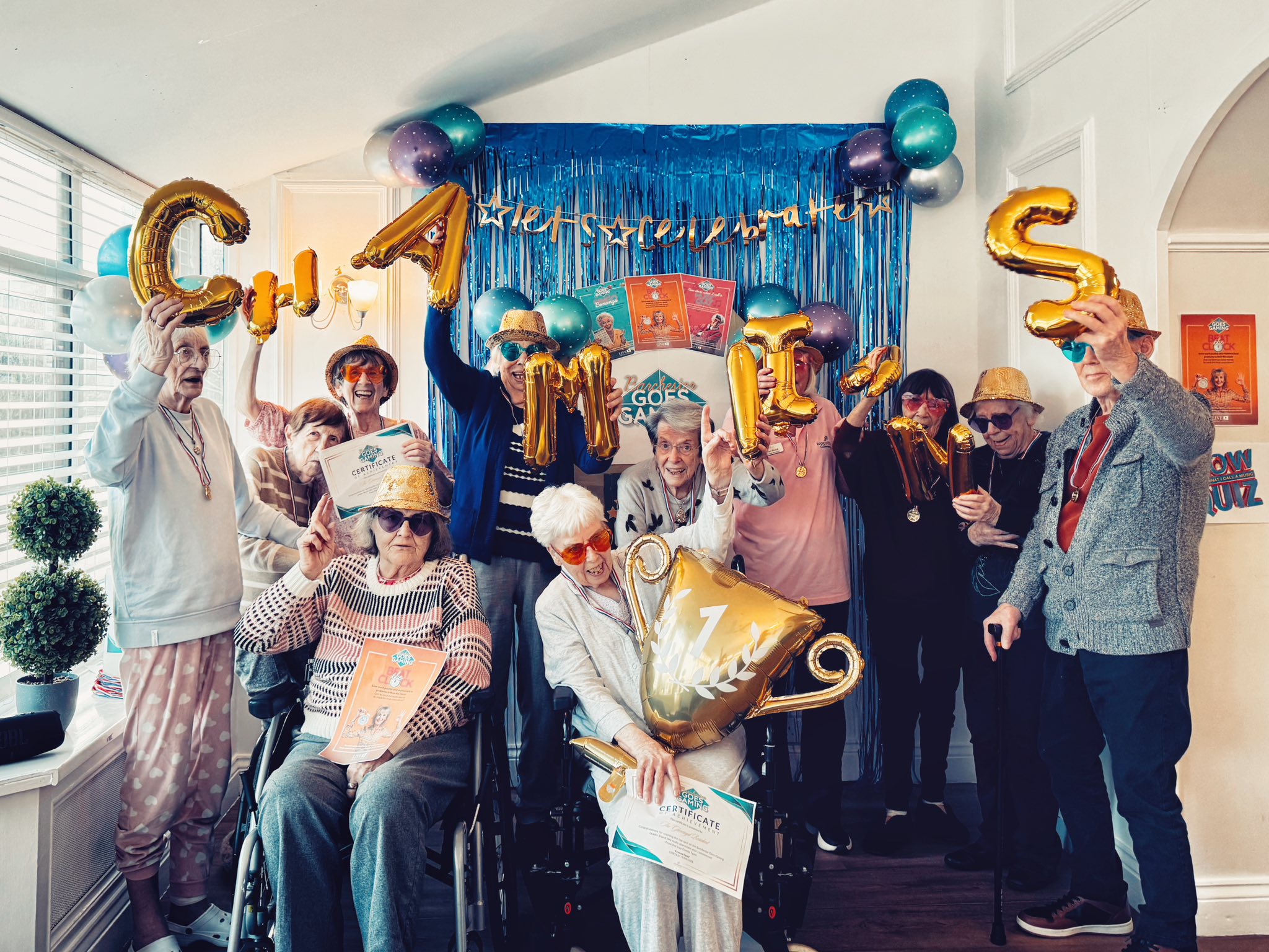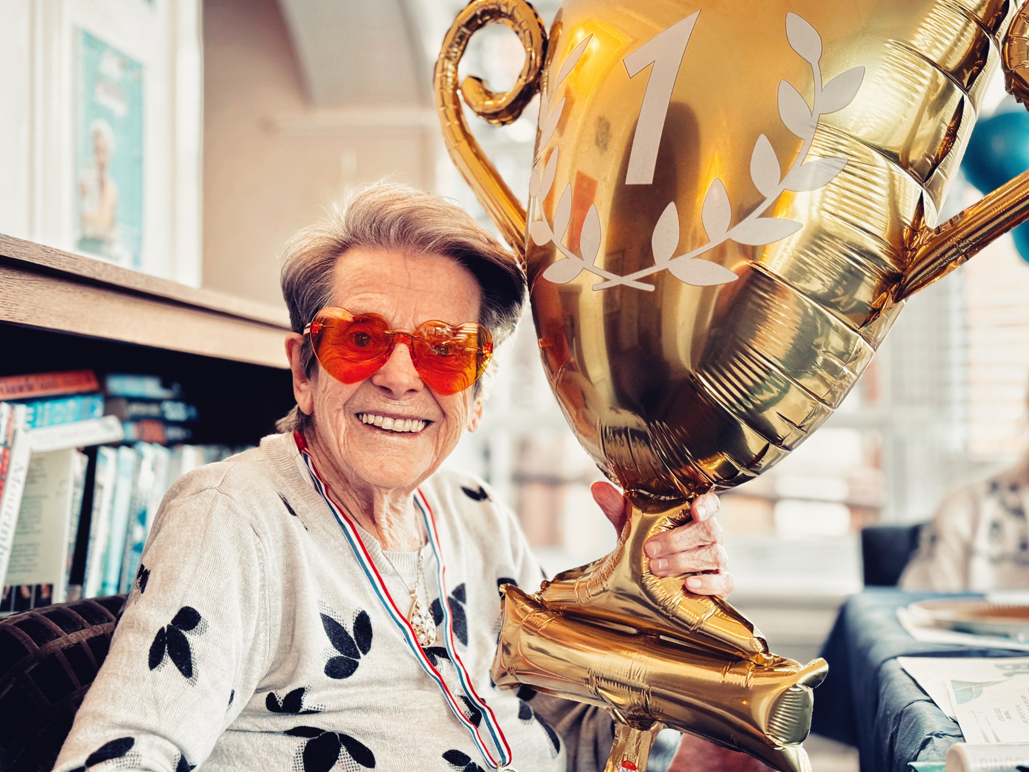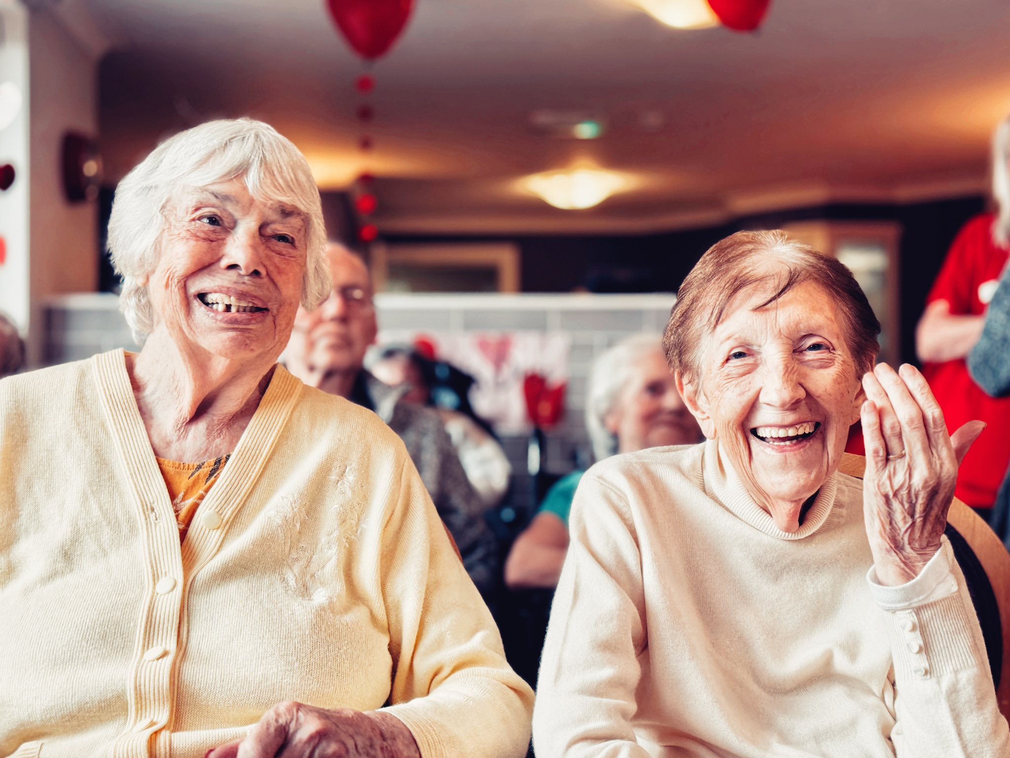 For those who were unable to attend, we took the balloons to them in their rooms, and they enjoyed one-by-one playing balloon tennis with members of staff. Whether the residents were at the party or in their rooms, they were engaging socially, chatting, building relationships with staff and each other and, without even realising it, they were also taking part in exercises.