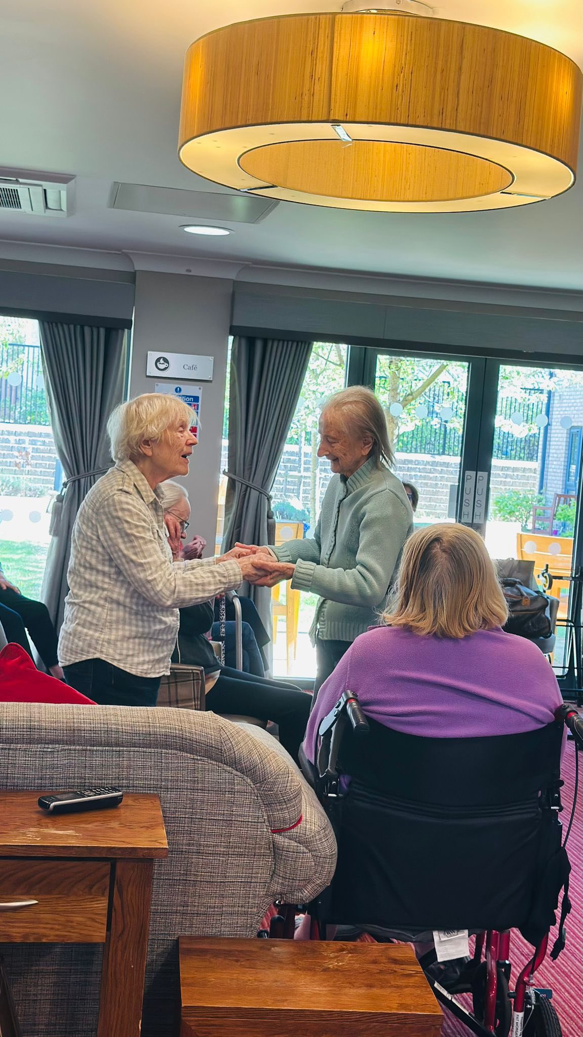 Amanda really enjoyed seeing all the children. Having previously been a teacher, it clearly meant a lot to her, and you could see from the smile on her face just how much it made her day. We were even lucky enough to have visits from the Easter Bunny and some special guests, which brought so much excitement. Both the residents and the children were laughing and smiling throughout—it was such a joyful atmosphere.