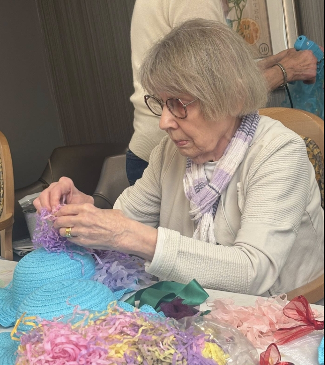 Our residents spent time making beautiful Easter wreaths, using greenery, decorative eggs and a variety of cheerful spring touches. The room was filled with laughter, conversation and a shared sense of creativity as everyone got involved and added their own personal flair to their designs.