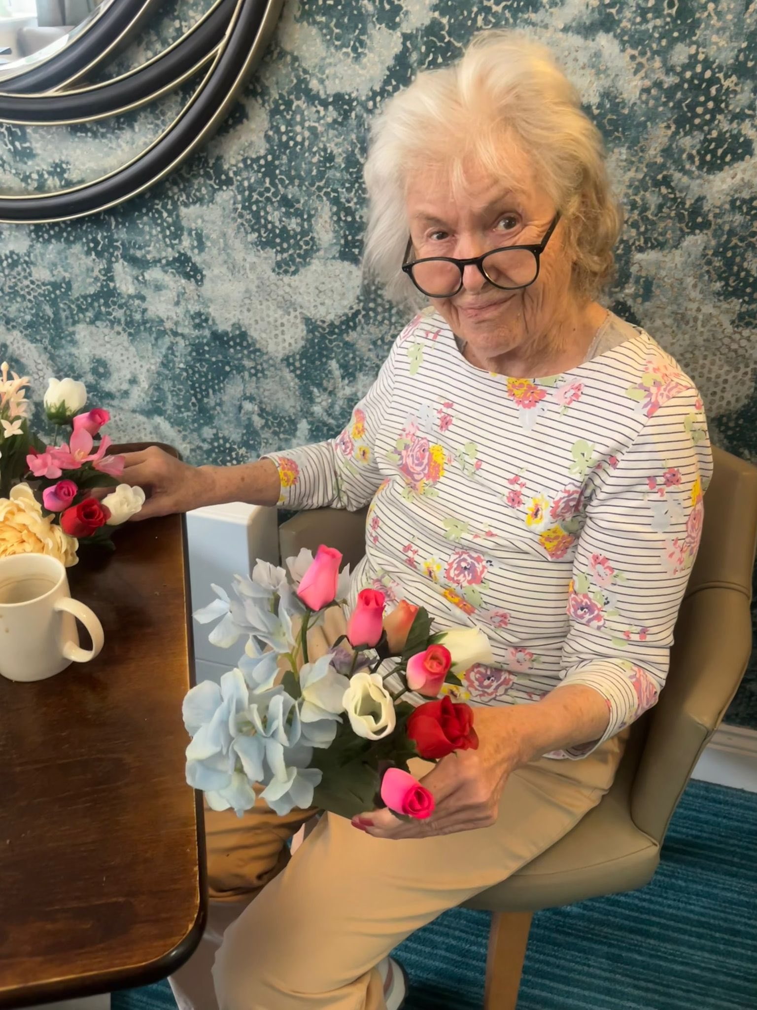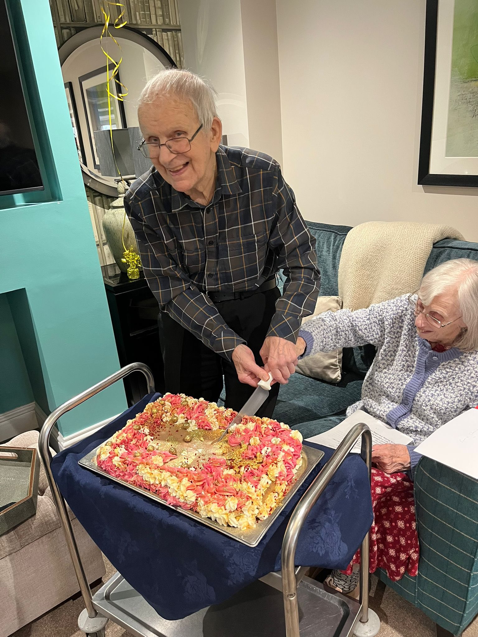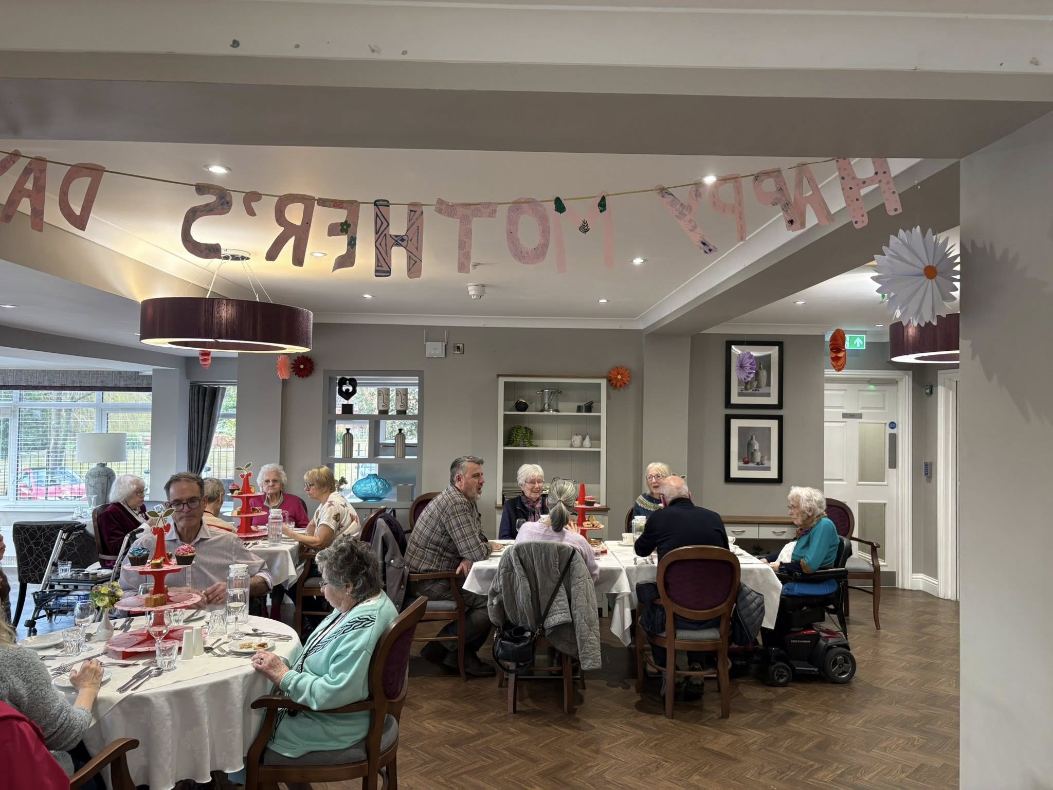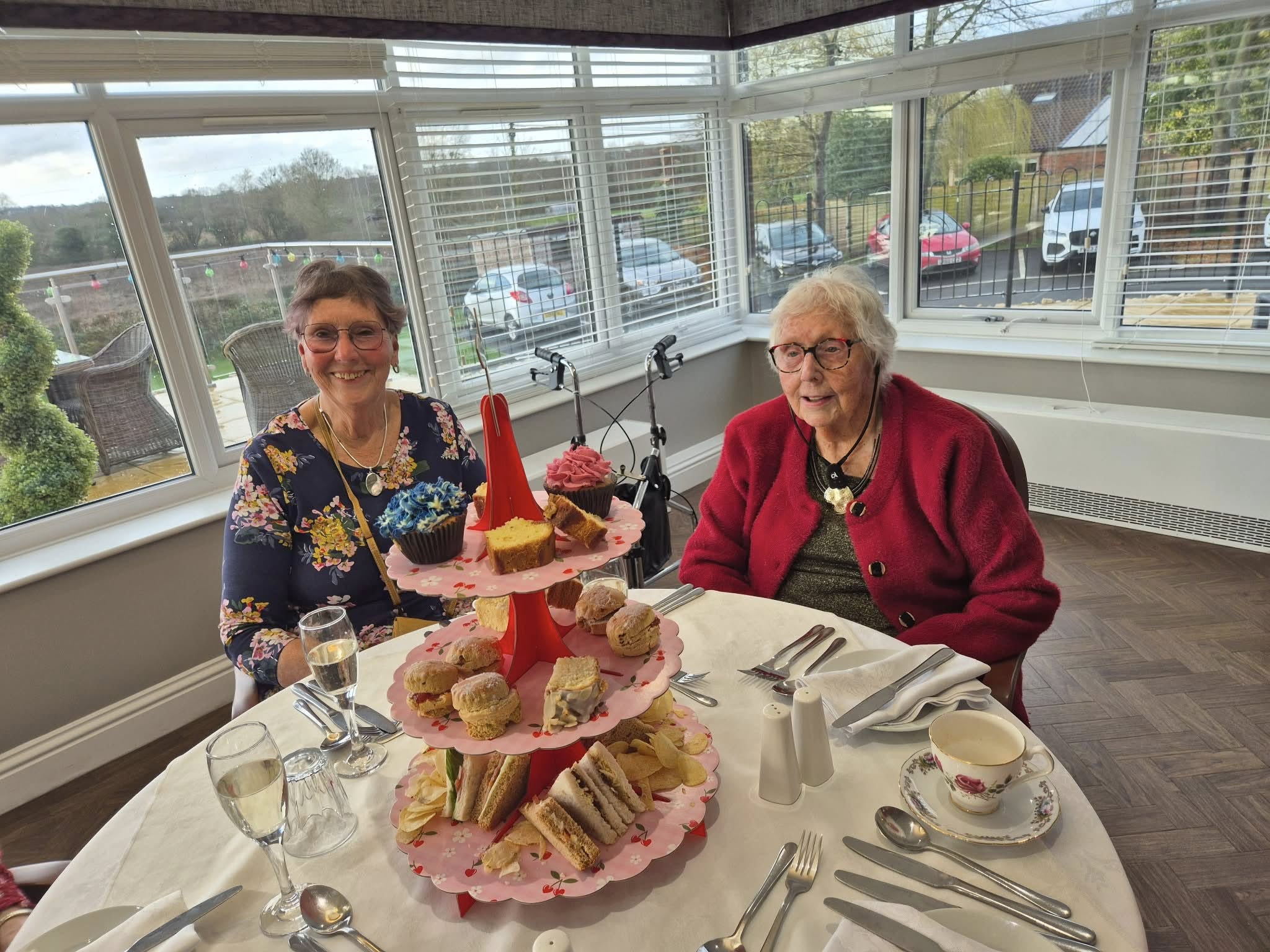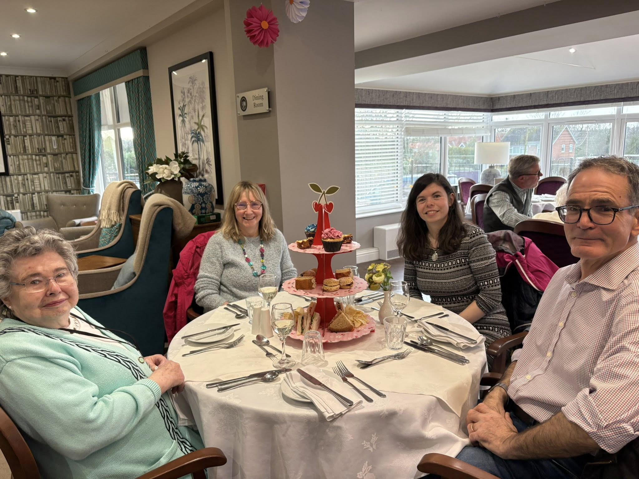 Staff at Canmore Lodge arranged an afternoon tea for residents and their loved ones, beautifully presented with flowers and prosecco. Head chef Davis Mathai prepared a special menu of sandwiches, freshly baked scones, and delicate pastries to mark the occasion, alongside a selection of cakes lovingly made by the residents’ weekly baking club, creating a warm and celebratory atmosphere for everyone in attendance.