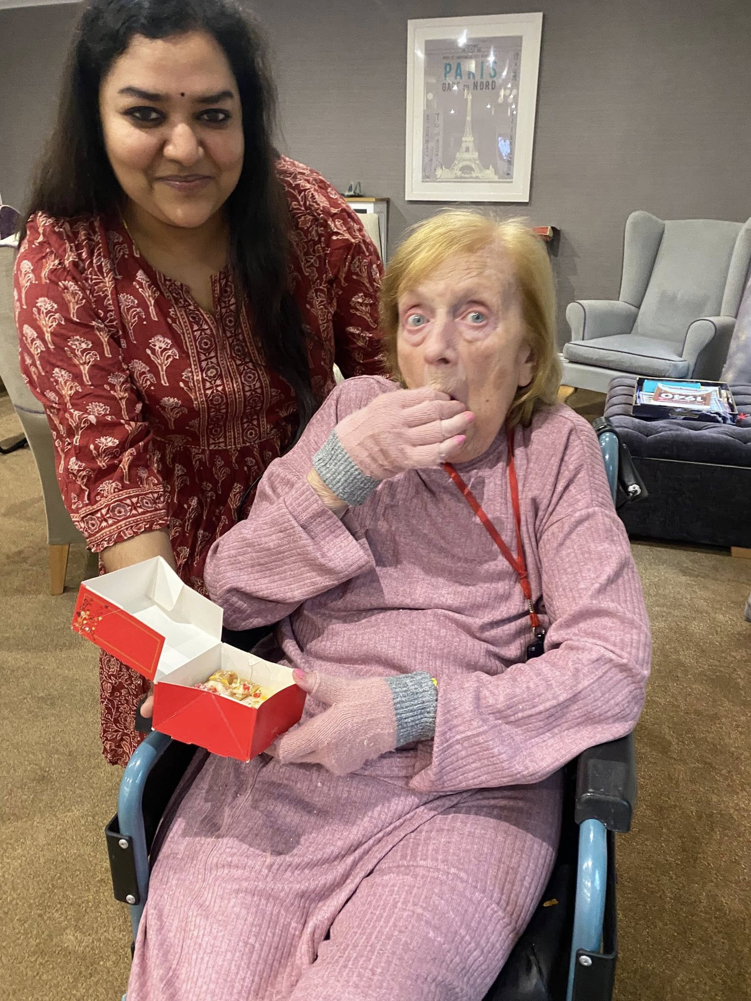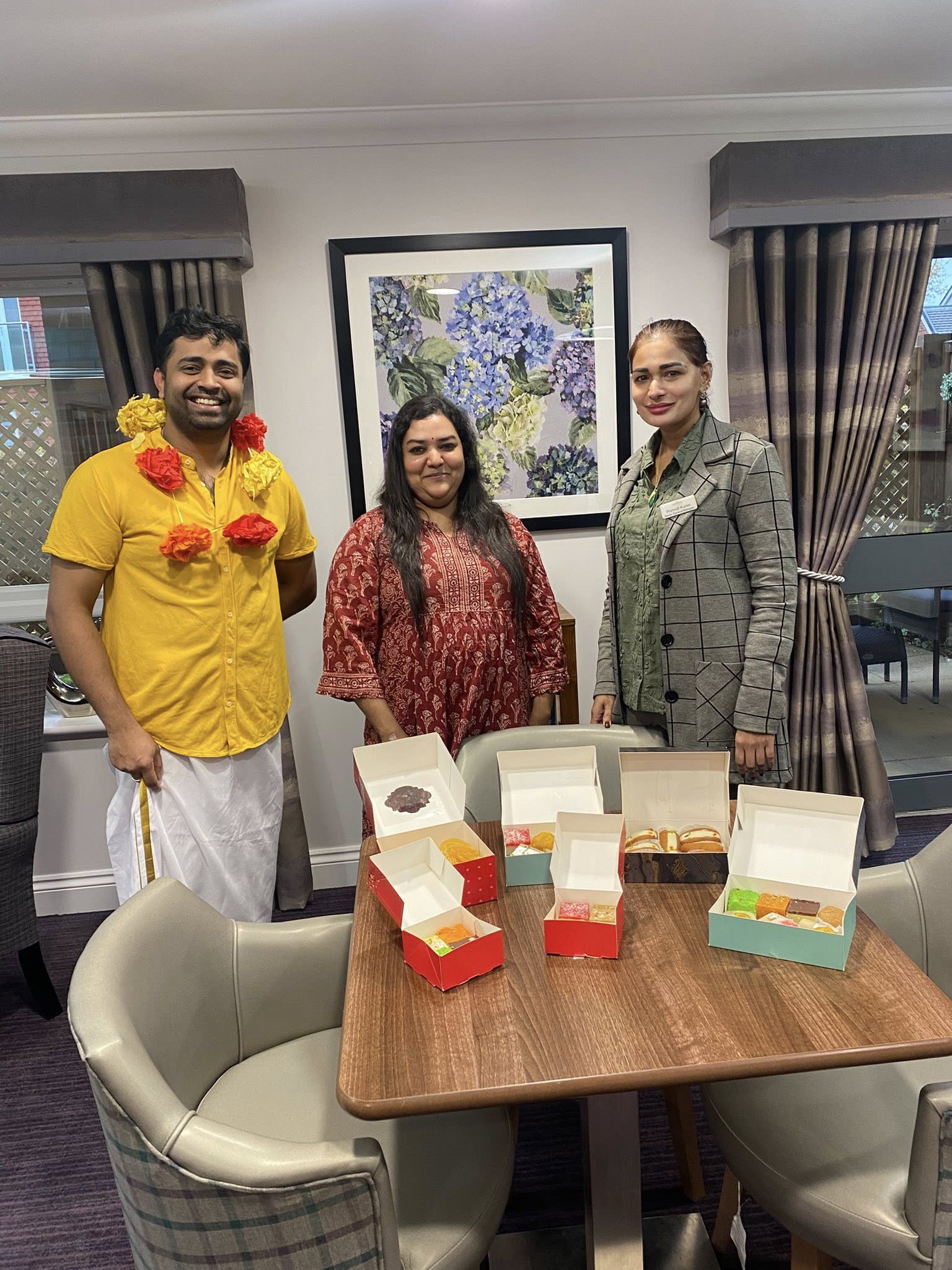 Staff members came dressed in their celebration clothes to show the residents and bought in homemade traditional sweets, the residents loved trying the new tastes of the sweets and found the colourful clothing enchanting.