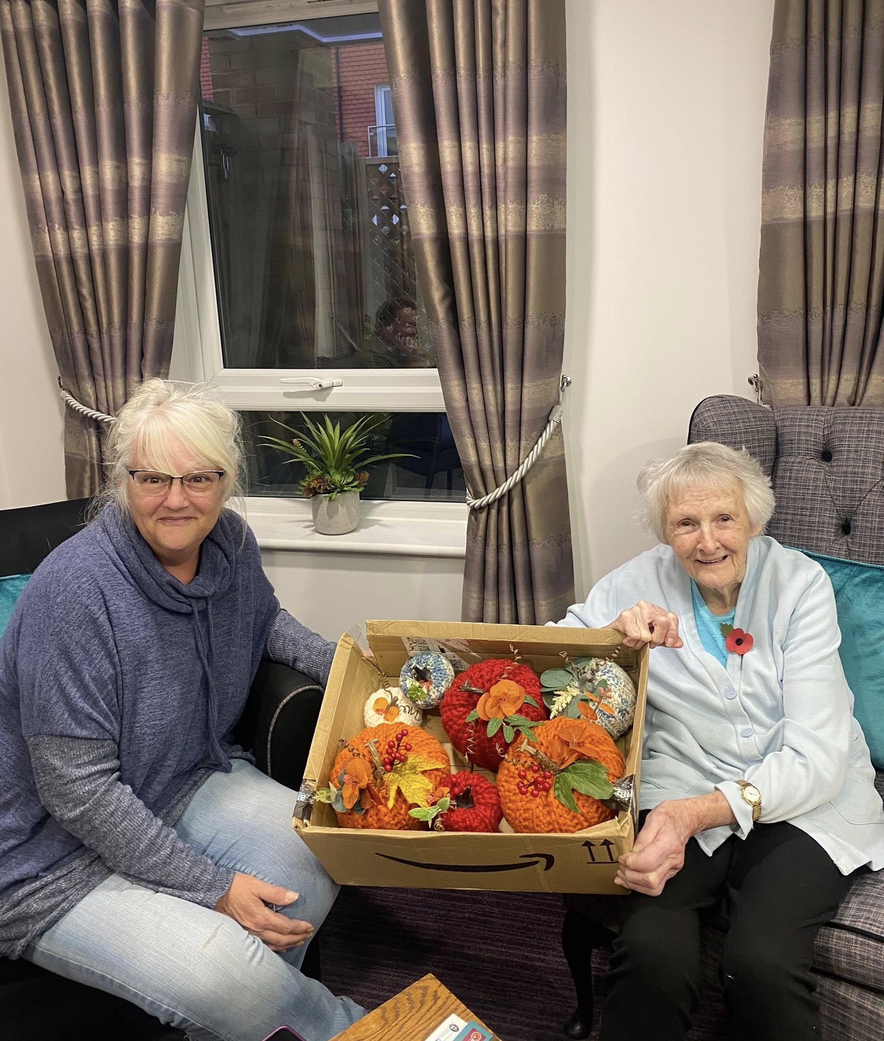 The regular knitting club made the homes decorations by knitting pumpkins or all colours and sizes. There was a pumpkin carking competition for the residents and their visiting friends and families, the competition was so fierce that there had to be an award for 1st, 2nd and 3rd!