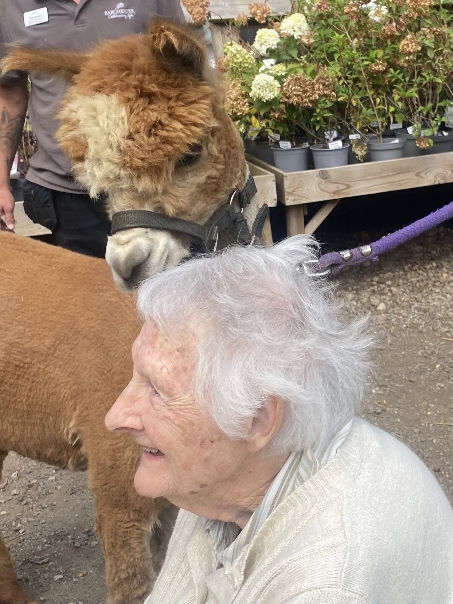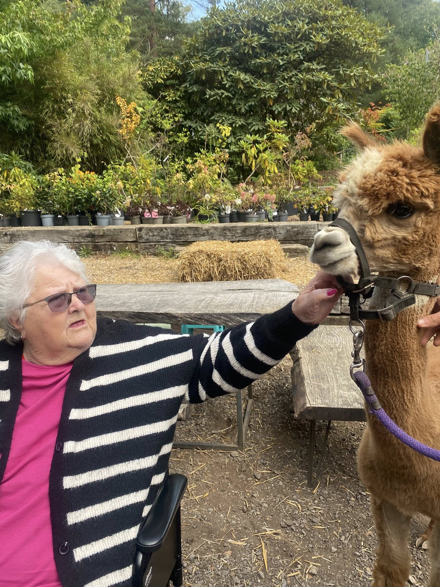 The visit included the home residents being allowed to stroke and talk to the resident Alpacas, for some this bought out smiles and giggles, something so simple can bring such pleasure.