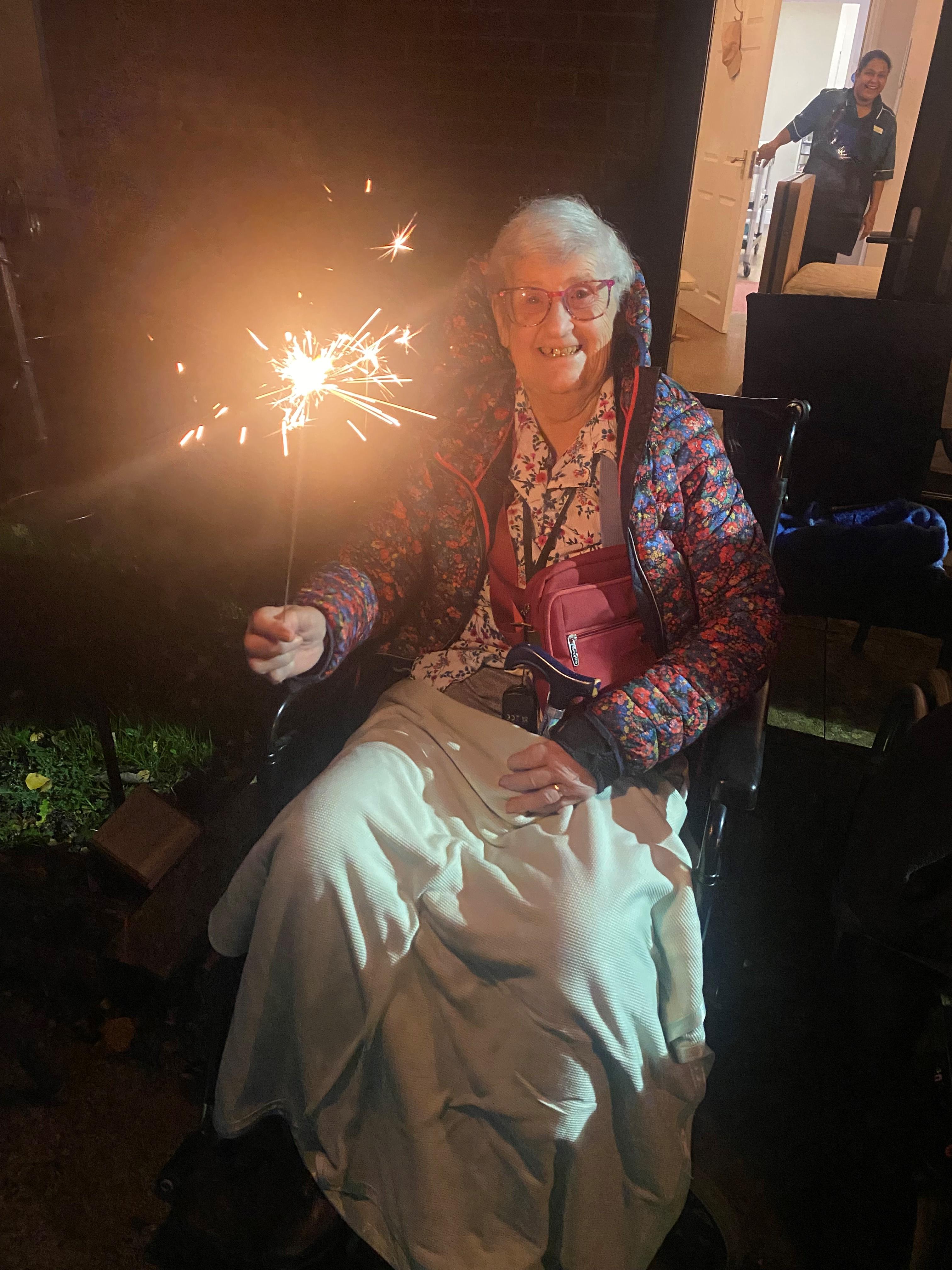 Staff, residents and families celebrated Bonfire Night with a bang when they wrapped up warm to watch a fantastic firework display and enjoyed lots of delicious food and hot drinks prepared by our talented chef.