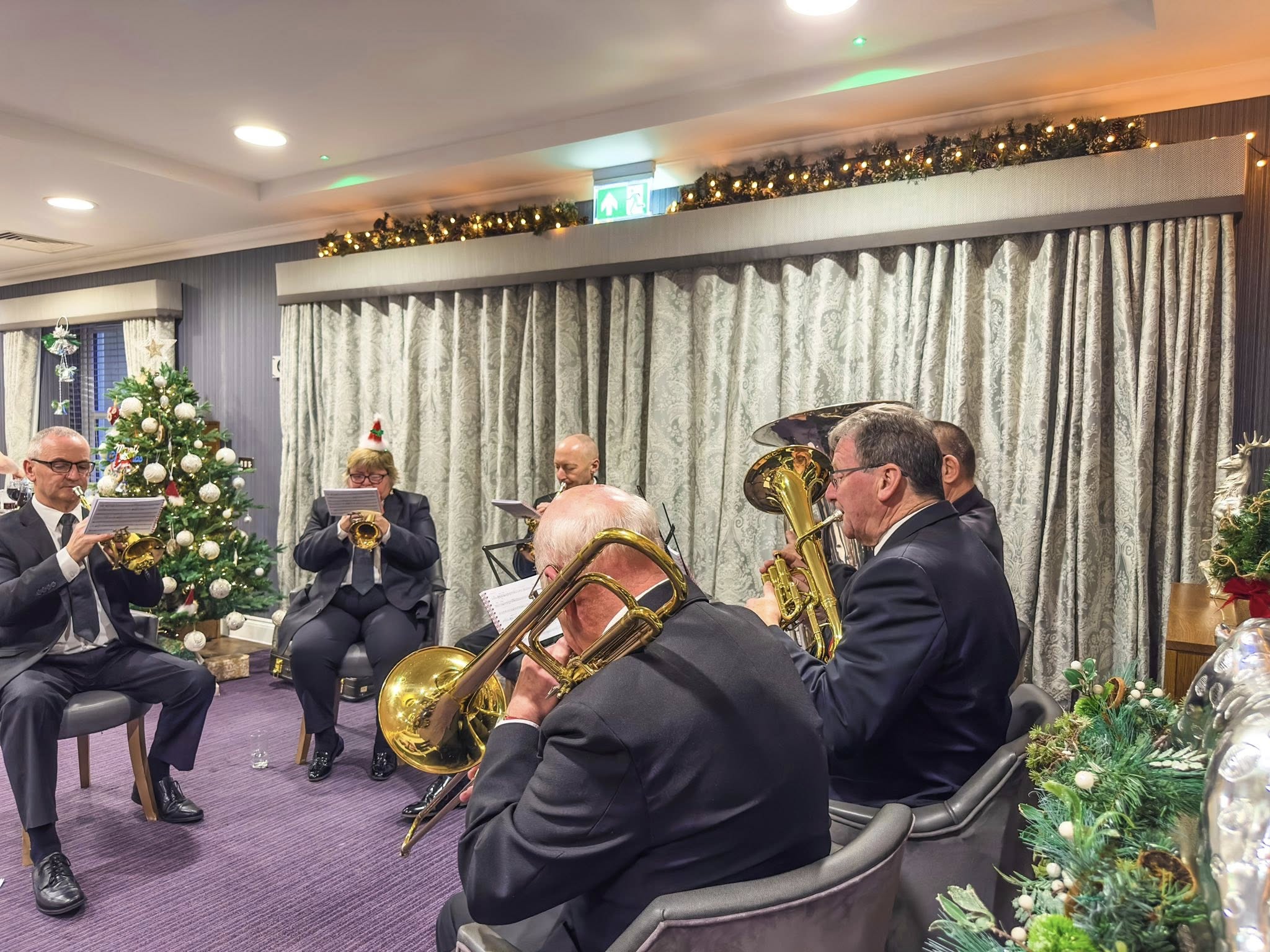 We were delighted to welcome an ensemble from Sherborne Town Band into our home to play traditional Christmas carols.