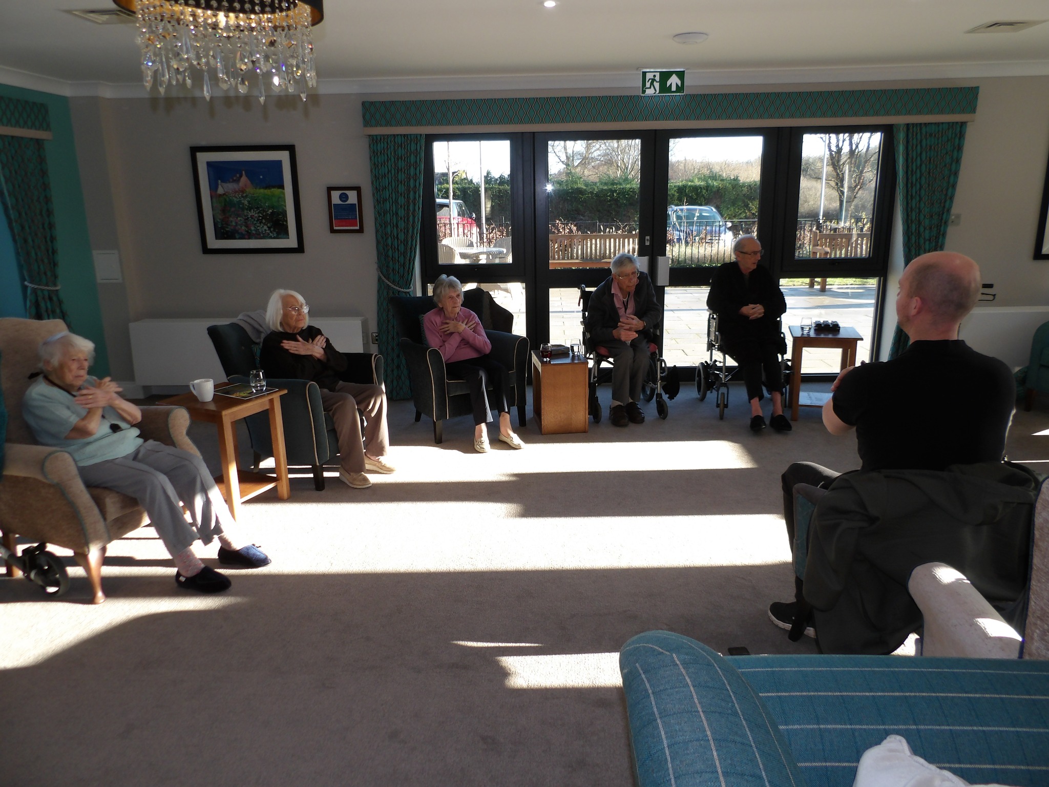 This morning our residents enjoyed a morning of music with the fabulously talented Tom Wenlock singing hits from across the decades residents from both communities came together for a good old fashioned sing-a-long and boogie!
