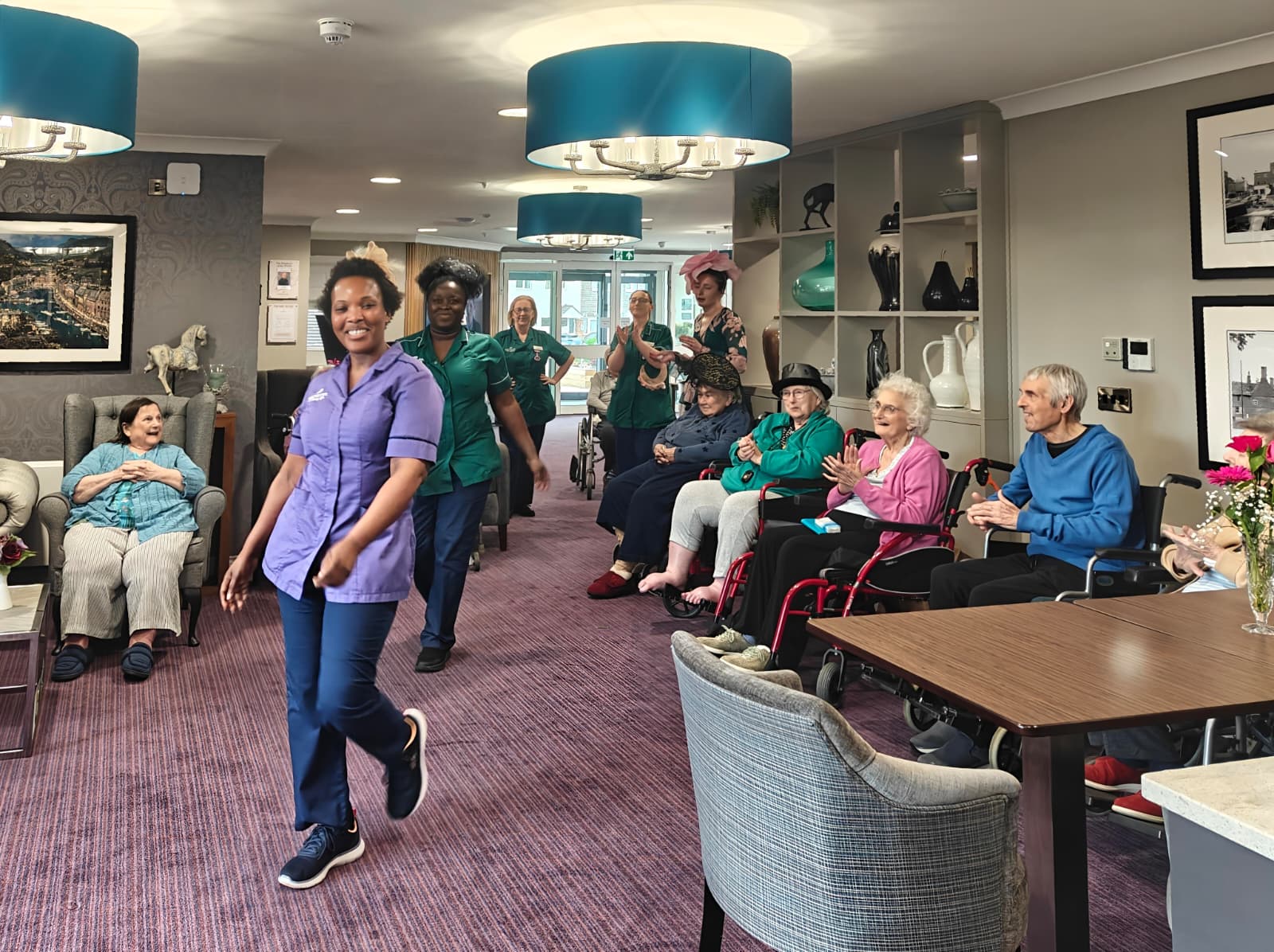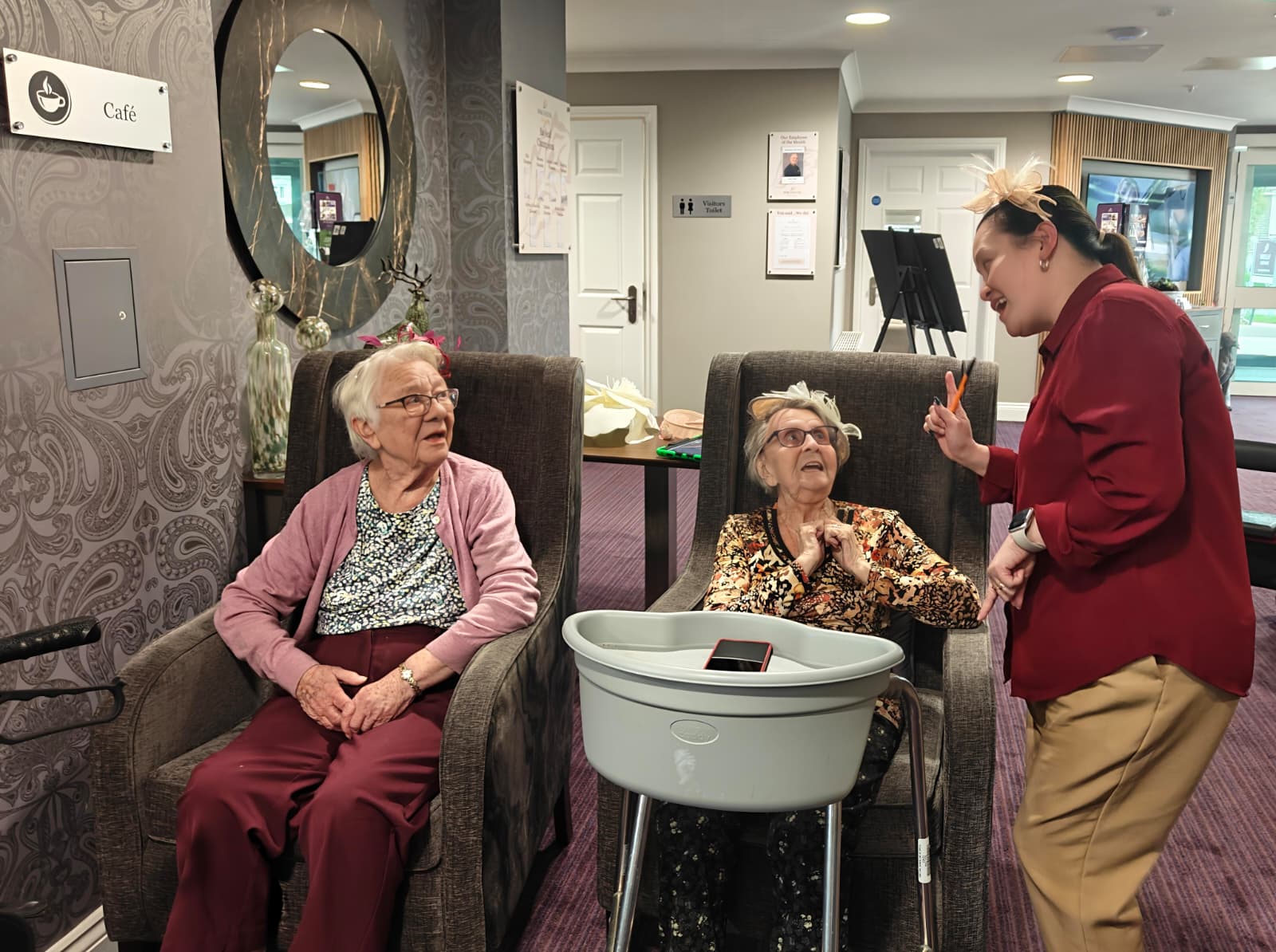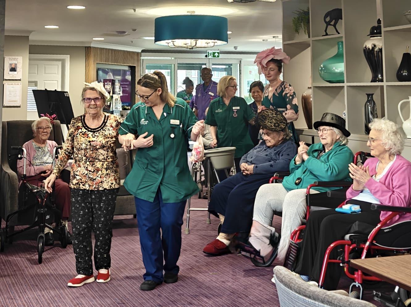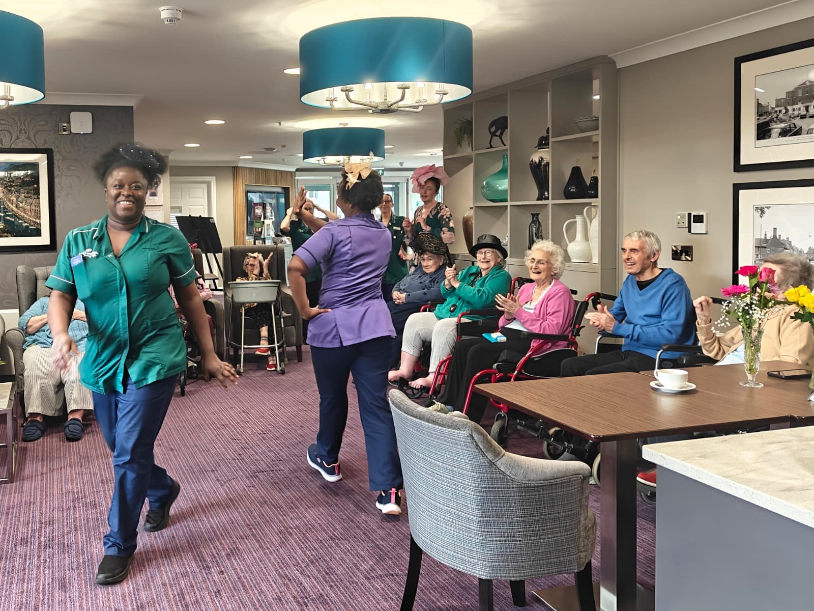 For those who were unable to attend, we took the balloons to them in their rooms, and they enjoyed one-by-one playing balloon tennis with members of staff. Whether the residents were at the party or in their rooms, they were engaging socially, chatting, building relationships with staff and each other and, without even realising it, they were also taking part in exercises.
