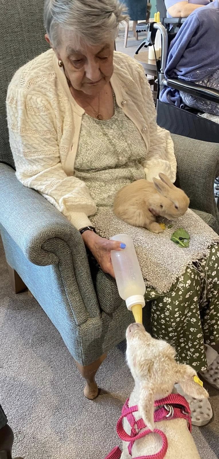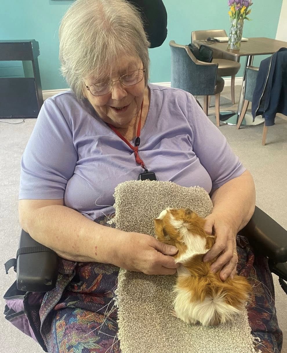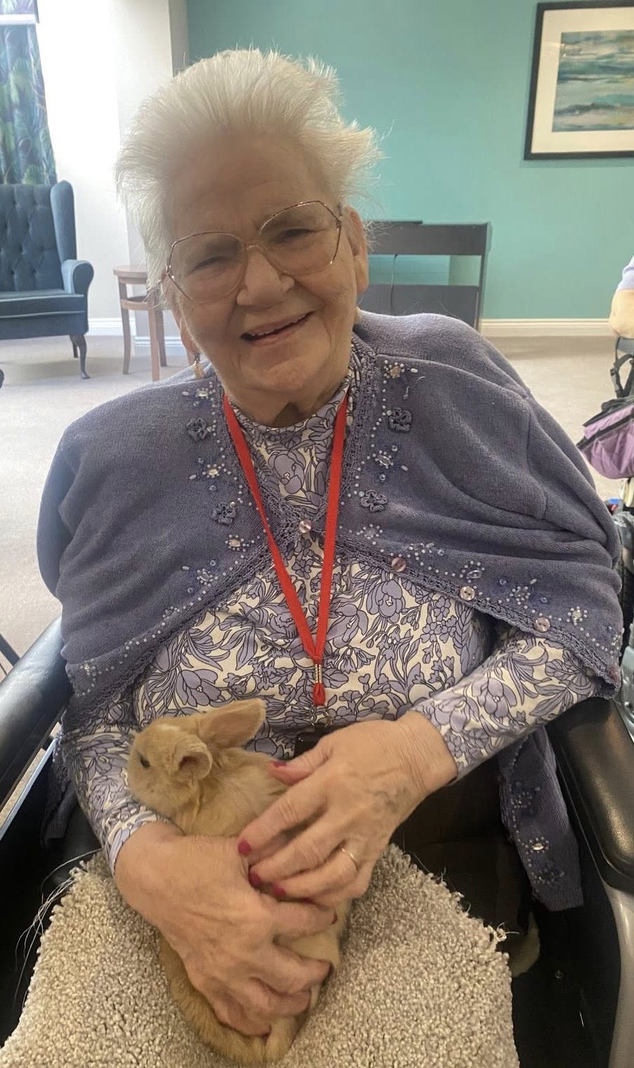Resident Pat couldn’t keep away and said that she loved the feelings of warmth and comfort she felt from holding one of the fluffy friends. Every resident derived benefit from this special time and we were very sad to let them go.