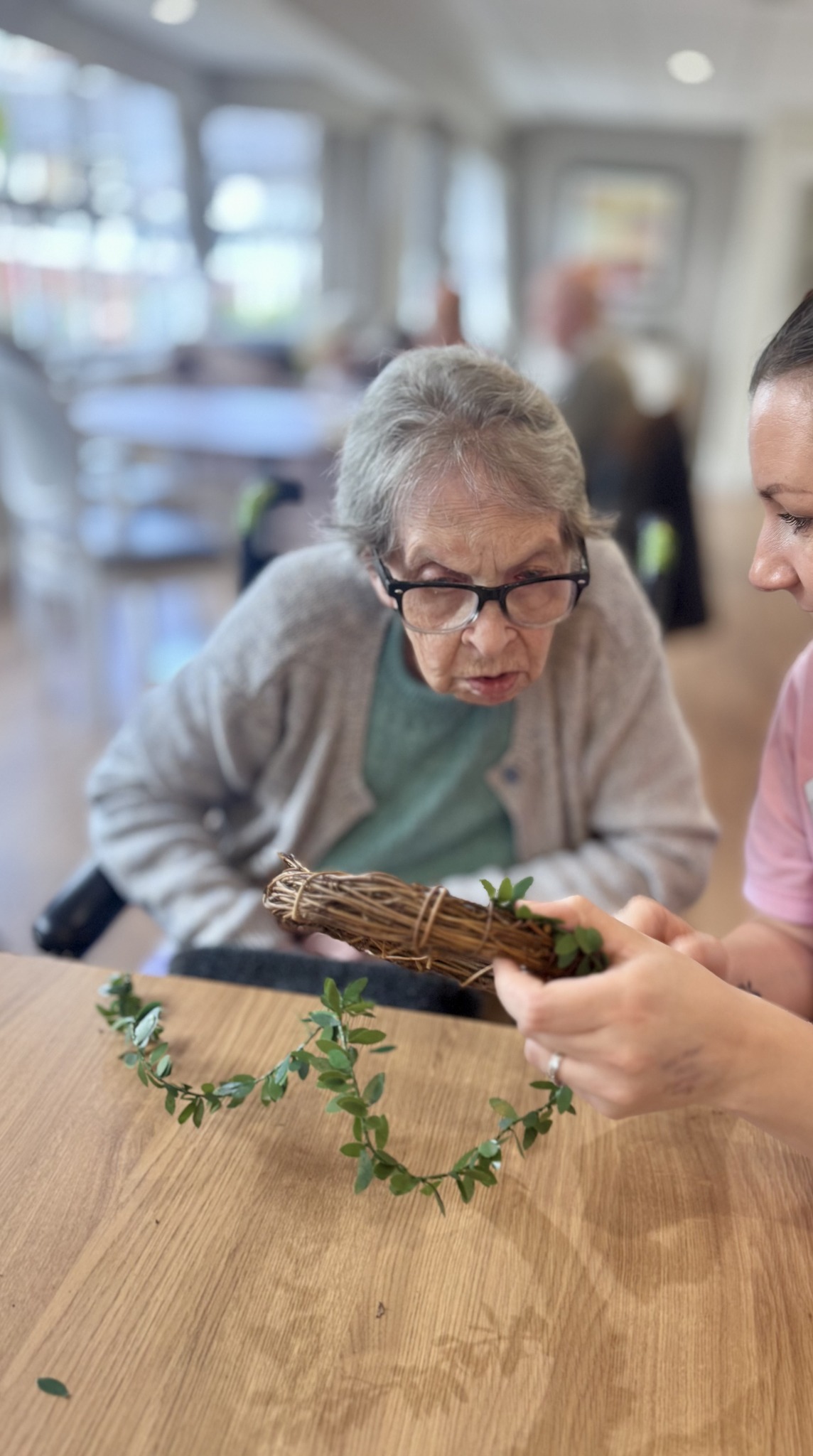 Our residents spent time making beautiful Easter wreaths, using greenery, decorative eggs and a variety of cheerful spring touches. The room was filled with laughter, conversation and a shared sense of creativity as everyone got involved and added their own personal flair to their designs.