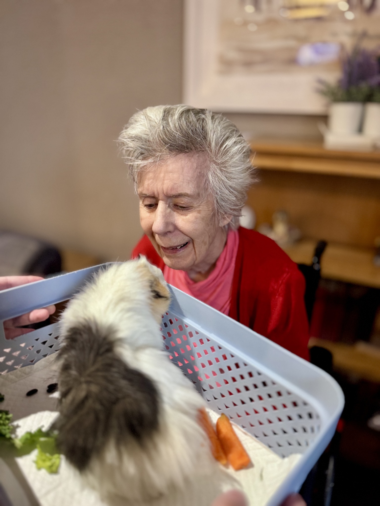 Our residents were thrilled to welcome some very special visitors from Cuddly Cavies, a charming group of gentle guinea pigs who certainly brought plenty of smiles with them. There was a wonderful sense of calm and happiness in the room as residents had the opportunity to hold, stroke and spend time with these adorable little animals.
