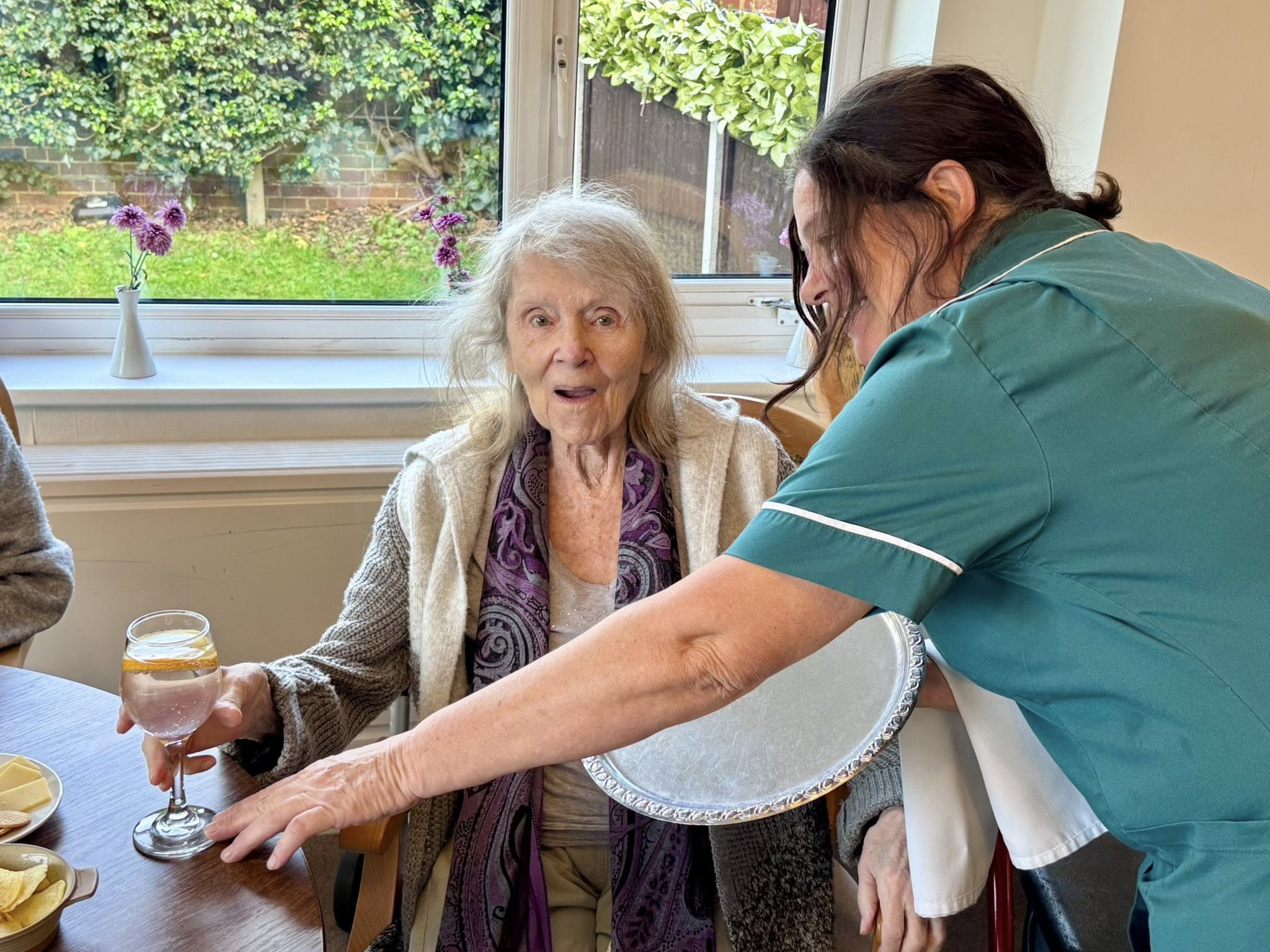 Tina served the drinks with fruit and played some music to enhance the Cocktail Party. Our residents had a wonderful afternoon and said they would love to do this more often and enhance it with a Family Quiz.