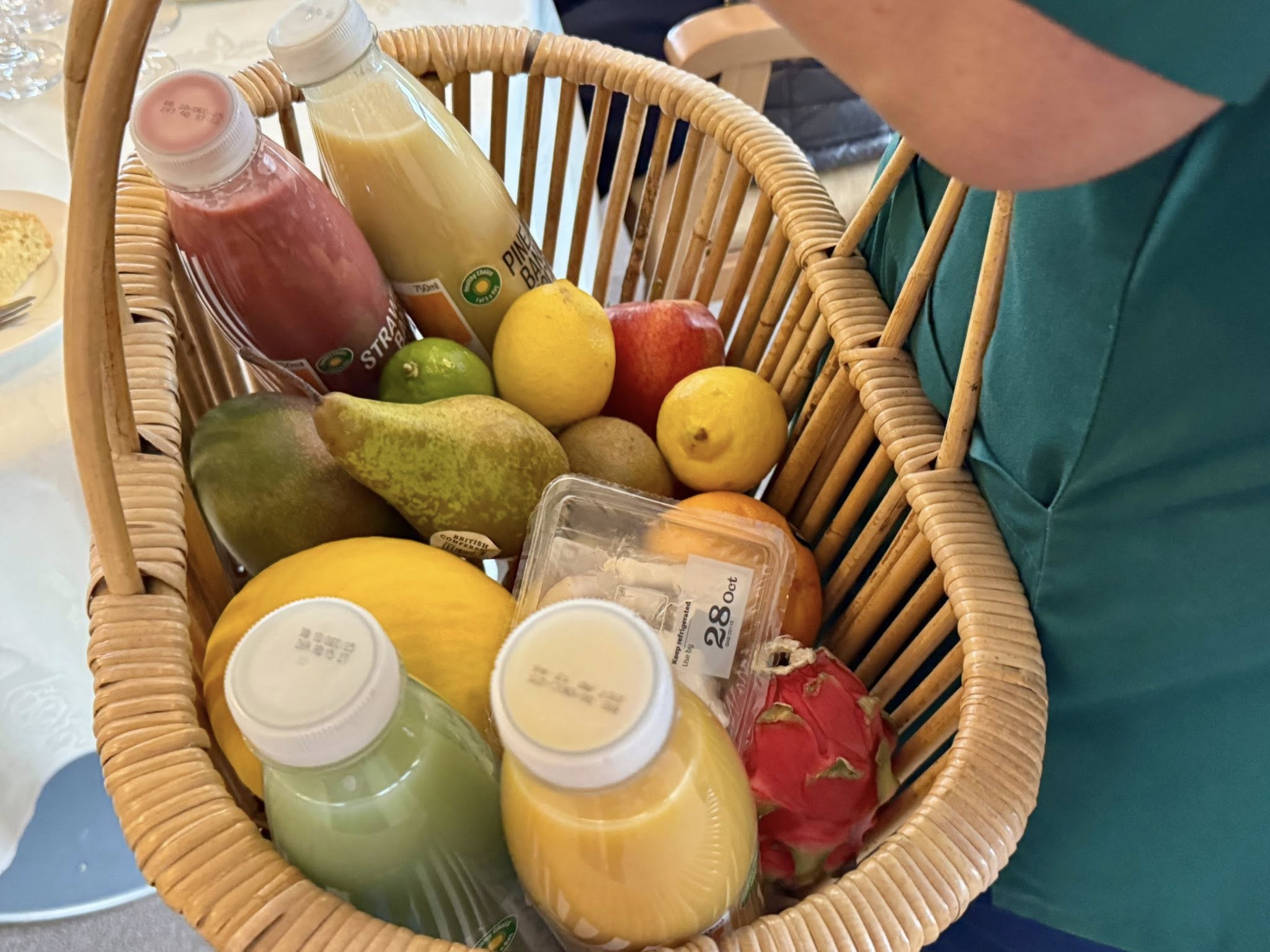 Everyone at Cossins House really enjoyed a fruit tasting session with our Deputy Manager Marita. Tasting exotic flavours. Marita filled her basket with all different fruits and juices of all different colours.