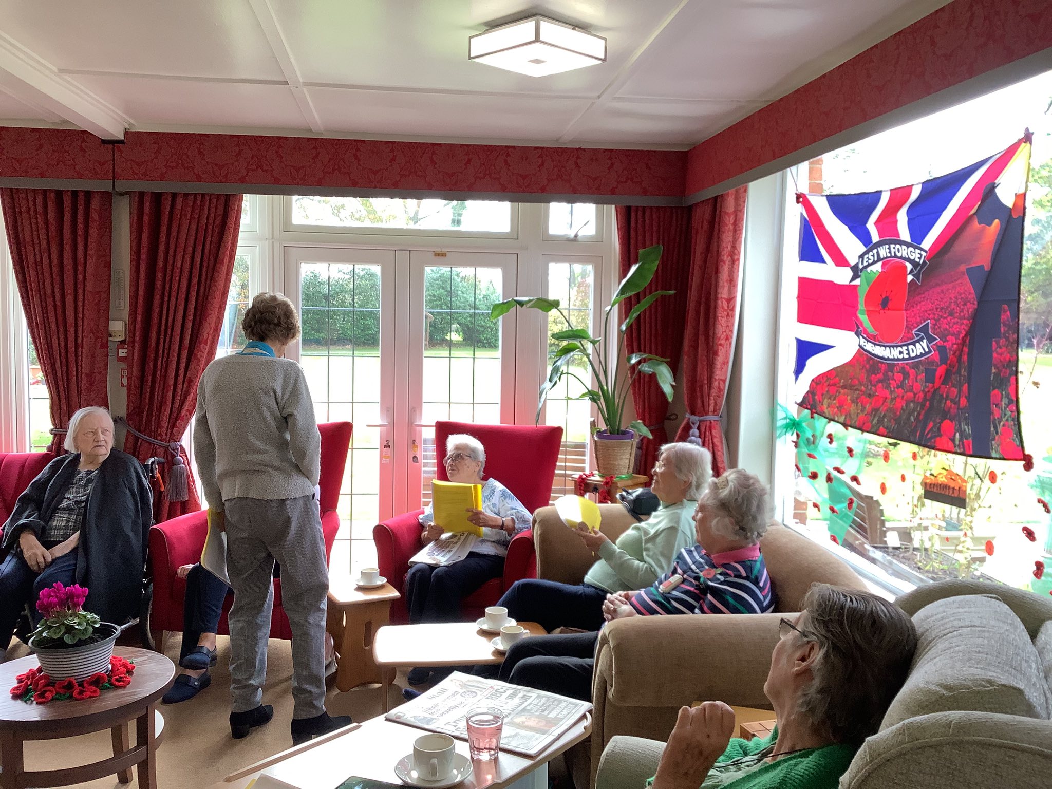 Our local vicar popped in to say a prayer and hold a Holy Communion Service for all our soldiers who fought for our country and had a two-minute silence with our residents.