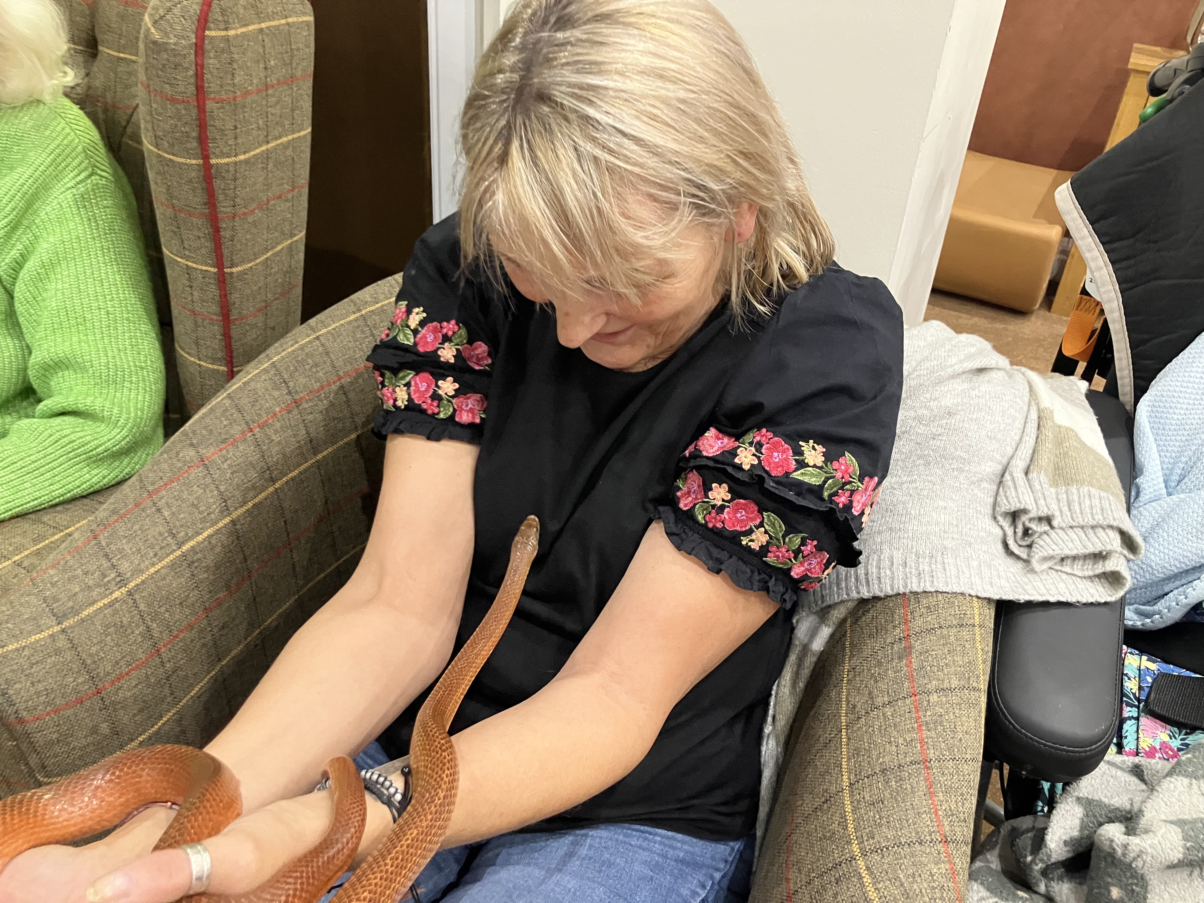 Paula Quin, a resident, said, “I love all animals so it was such a treat to meet the snakes, guineapigs, snails, and quails.”