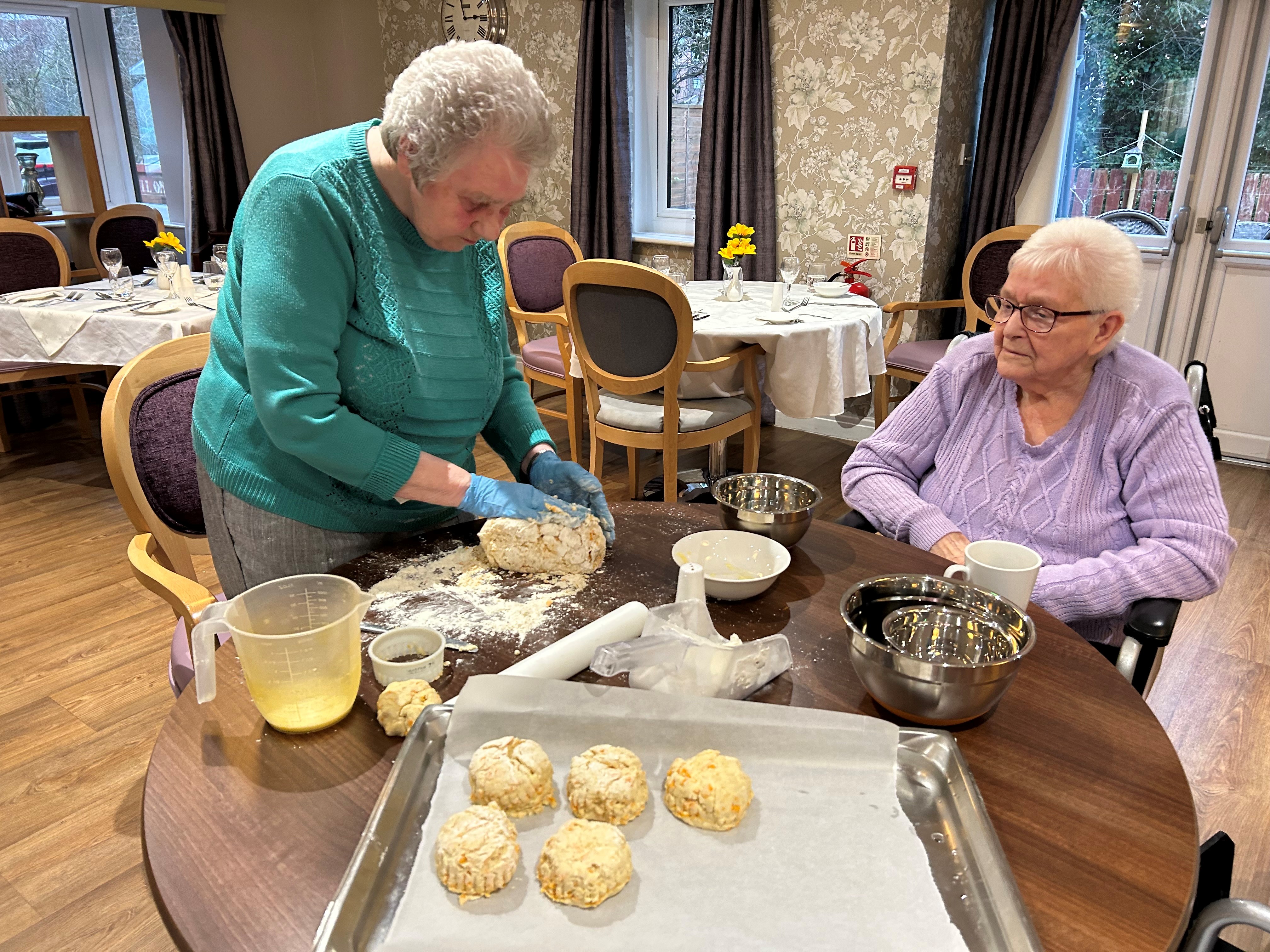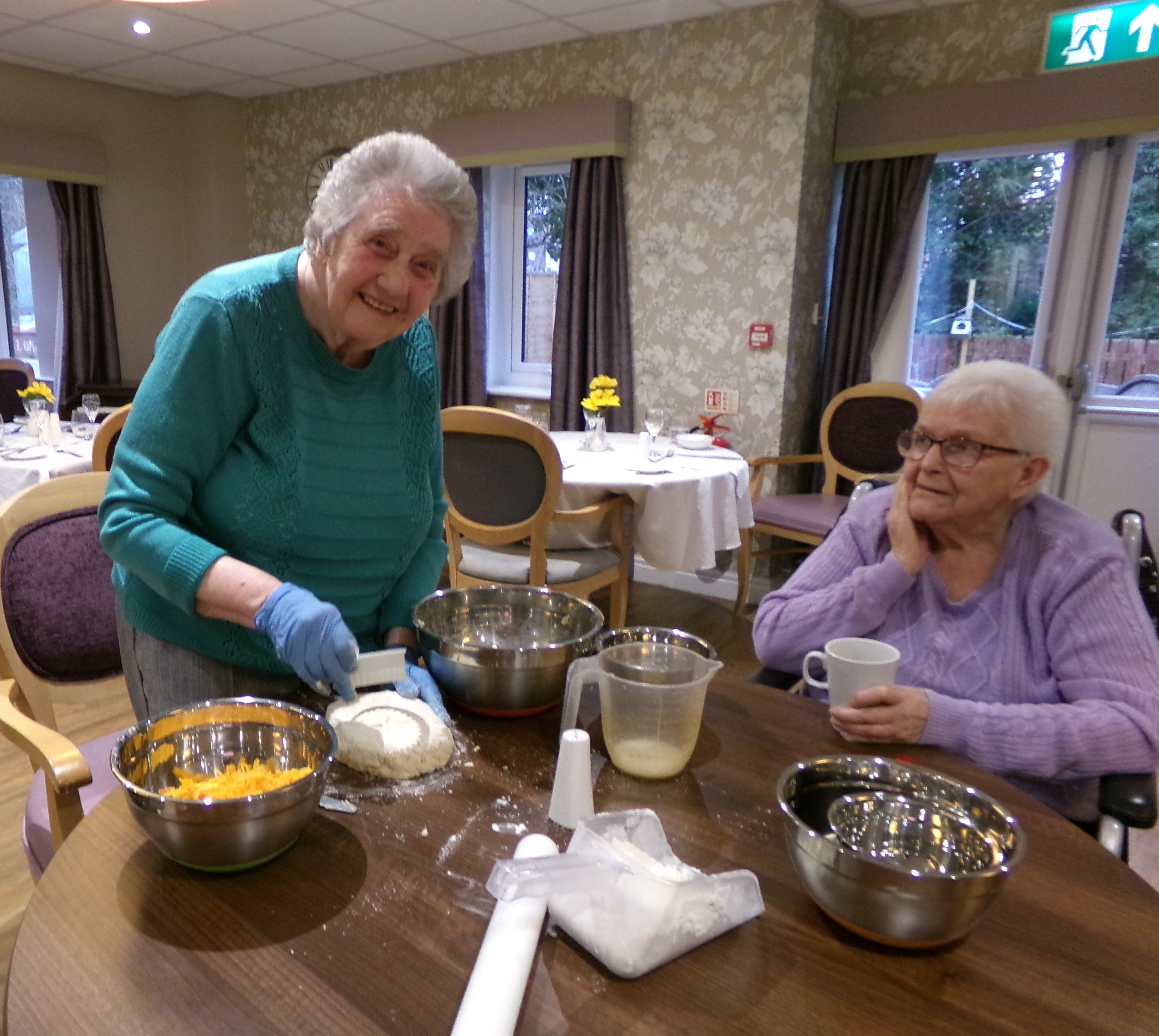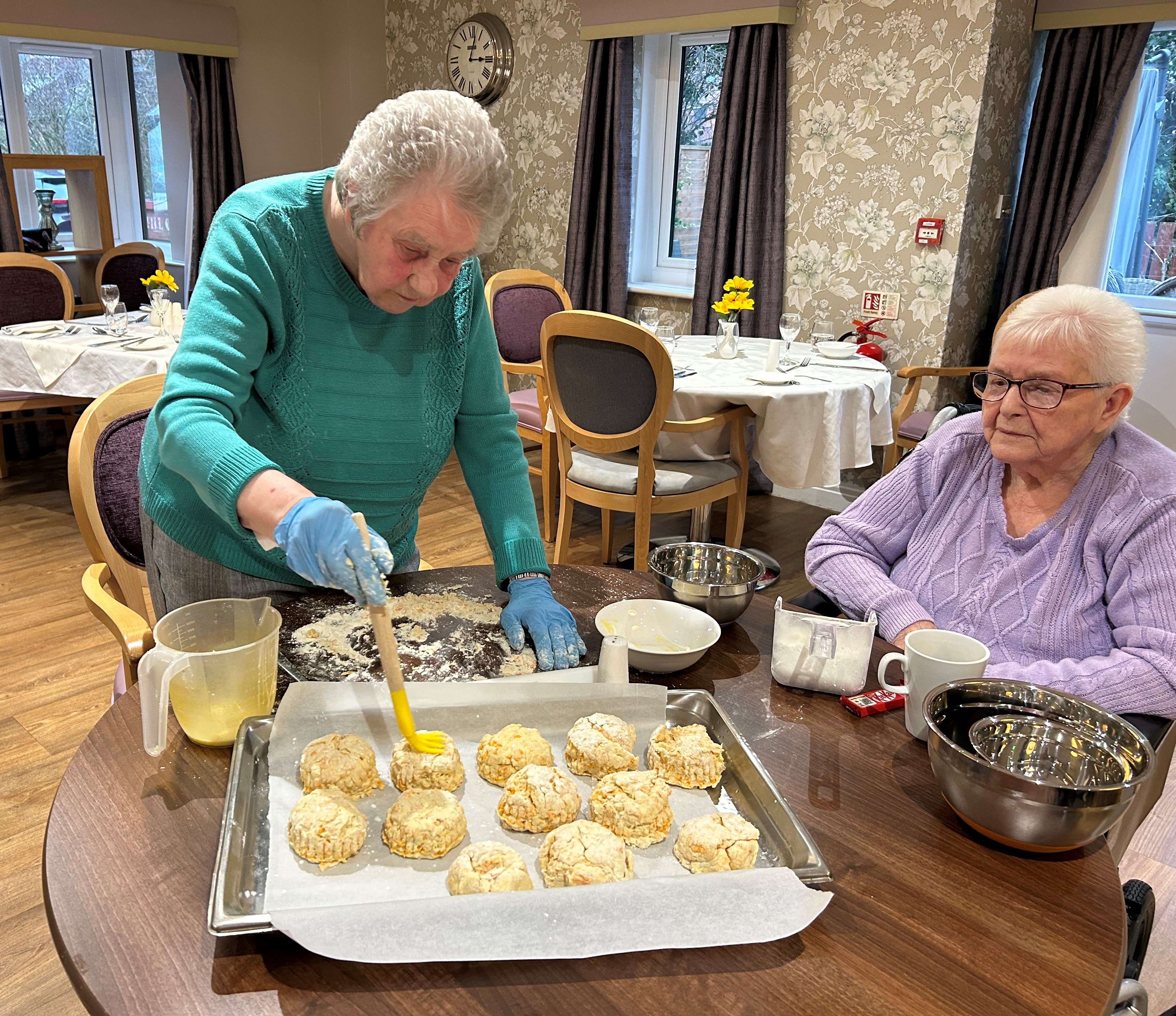 There were smiles all around in our baking session when we got out the mixing bowls and ingredients. Carol, who loves to bake, couldn’t wait to get her hands into the mixing bowls to make her speciality cheese scones and loved every minute.