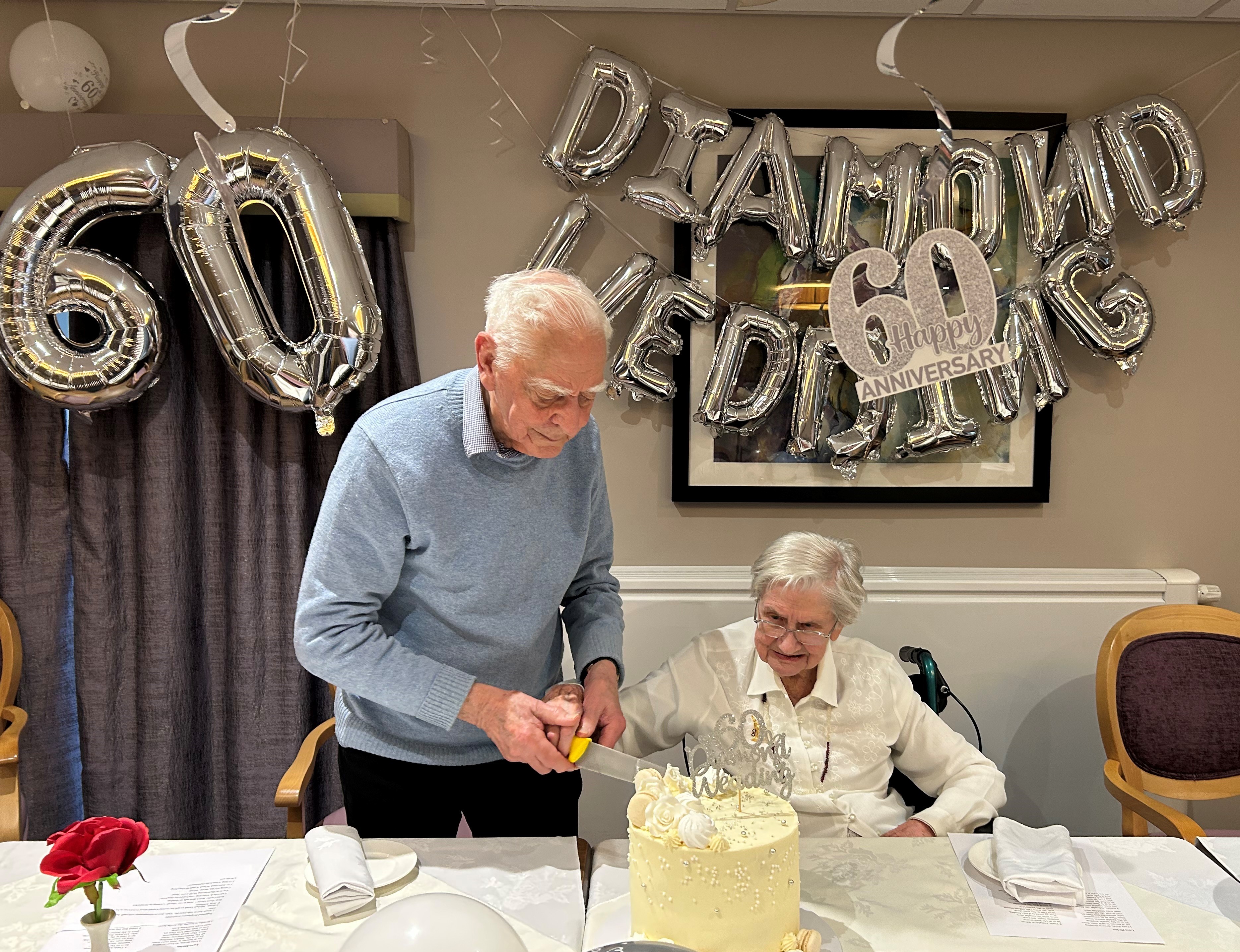 Michael & Diana celebrated 60 wonderful years together surrounded by family, close friends and friends in the home at their afternoon tea party with a beautiful cake specially made for them, along with sweet treats and party foods.