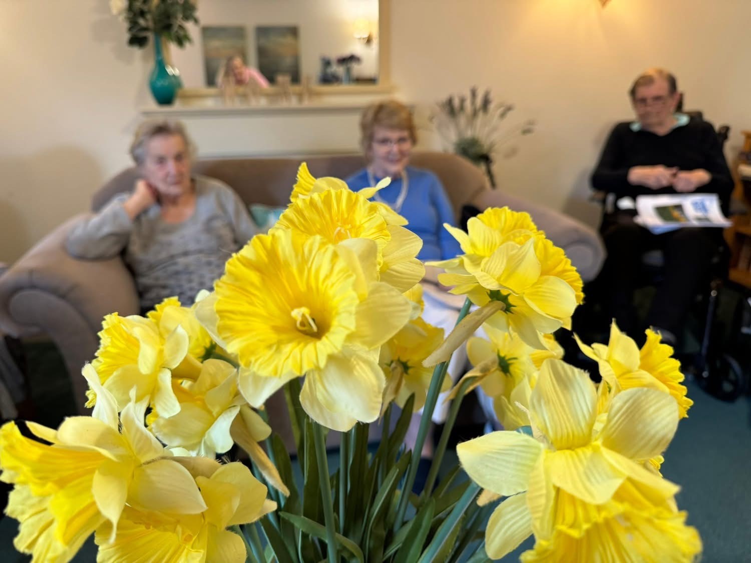 Marjorie, a resident from our community of Thorsby, proudly allowed us to use her beloved daffodils this morning, adding the finishing touch to the talks.