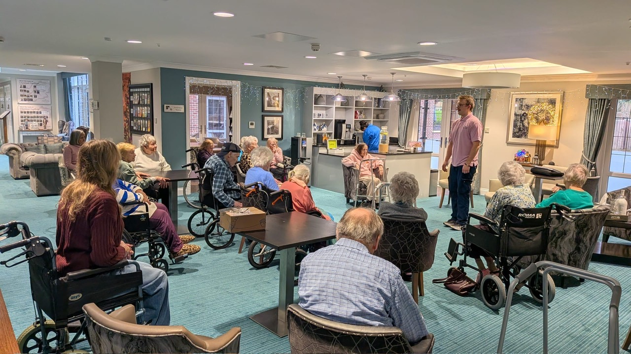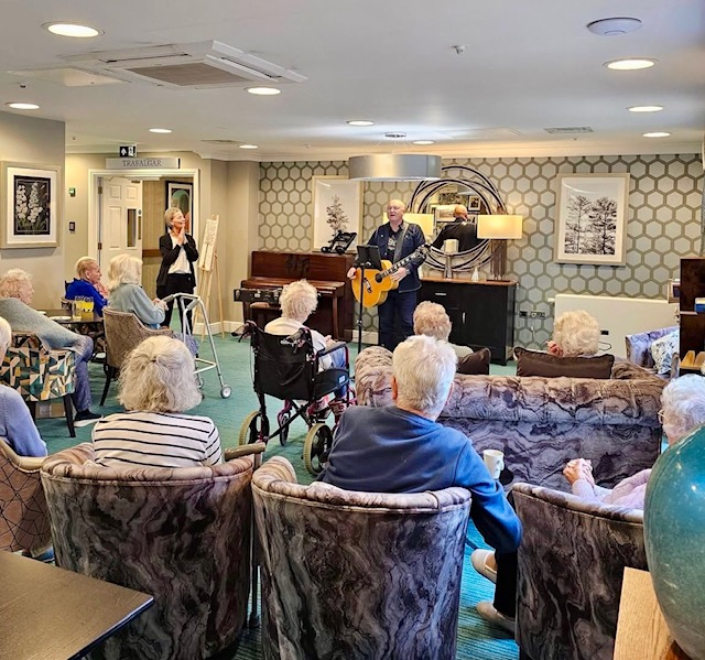 Matt always likes to test our knowledge with a bit of music trivia between each song! Testing music knowledge helps keep the mind active, boosting memory and engagement. It’s a fun, enjoyable way to support our residents’ wellbeing and mental stimulation🎙